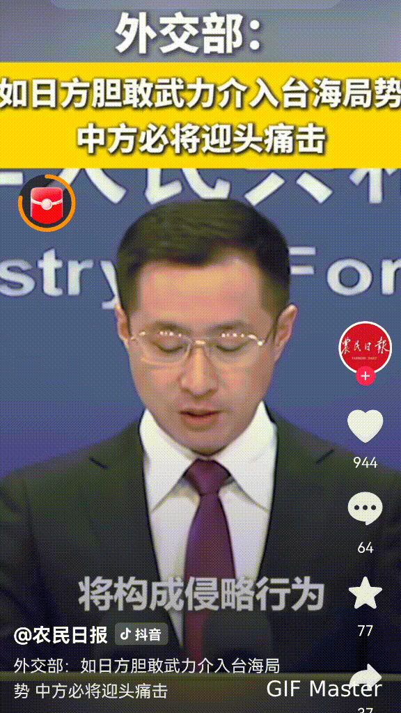 【中国外交部严正警告日本:玩火者必自焚!】 日本当局若敢武力介入台海,就是赤裸裸的侵略!中国将行使《联合国宪章》赋予的自卫权,以雷霆手段坚决捍卫国家主权。台湾是中国领土不可分割的一部分,任何外部势力休想越界半步! 历史是最好的教科书。80年前,中国人民在血火中粉碎了日本军国主义的铁蹄;80年后的今天,早已屹立于世界东方的中国,更有决心和能力斩断一切伸向台湾的黑手。我们正告日方:立即停止在台湾问题上的危险玩火,深刻反省历史罪责。任何挑衅都将是螳臂当车,玩火者终将自食恶果! 日本若武力介入台海就是侵略 中国统一大势不可阻挡日本真的敢武力干涉中国的统一吗 日本评论中国 日本侵略野心
