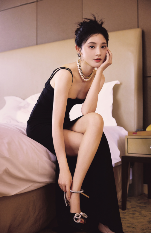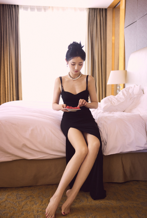 彭小苒的黑色吊带裙穿搭,妆造还是很可以的,nice!