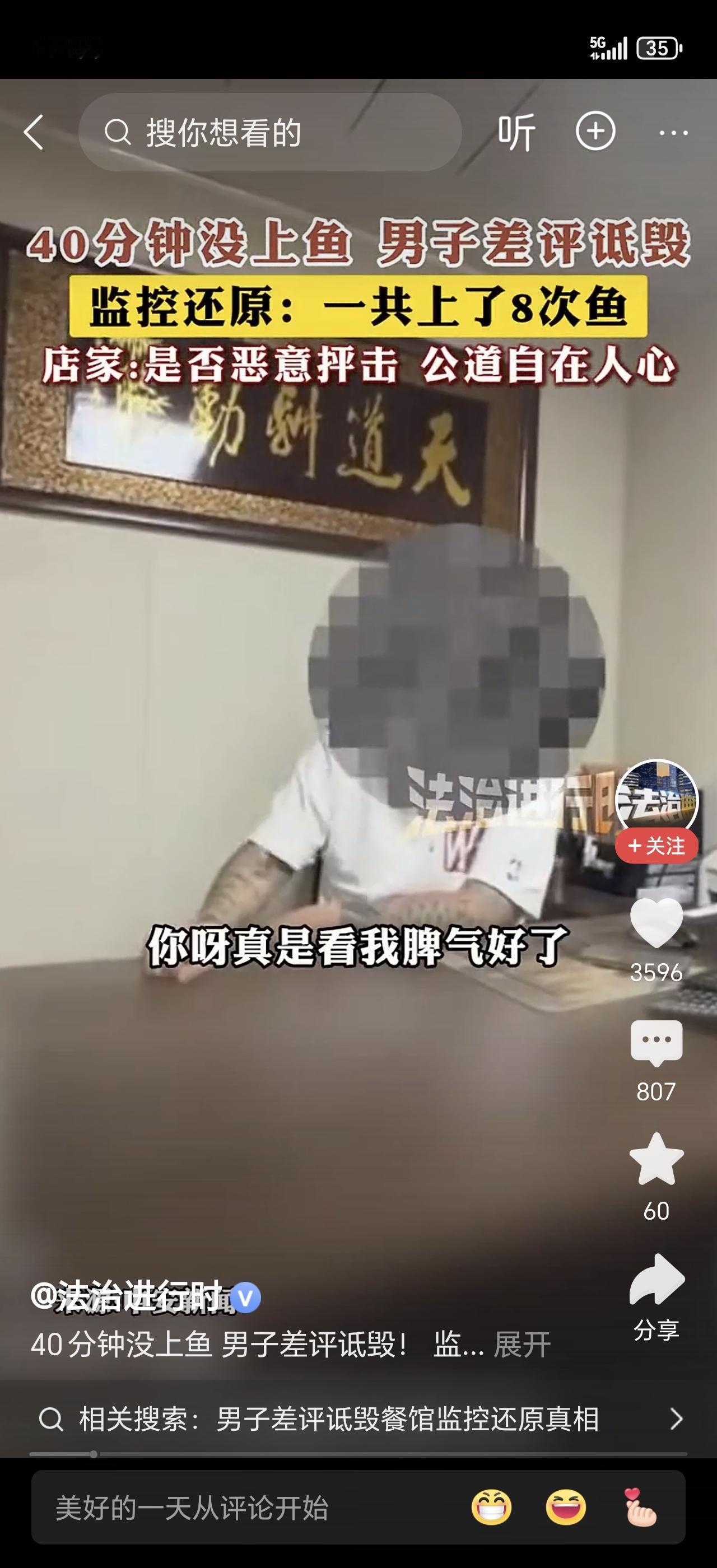 一条差评差点毁了餐馆生意,监控一放居然全是瞎编乱造? 辽宁这男子太离谱了!说吃鱼等了40分钟没上菜,拍视频怒怼商家“不会做生意”,把自己塑造成委屈顾客。 结果商家晒出监控,真相直接打脸——他8点18分落座,8点21分就上锅上鱼,前后8次补菜,甚至把鱼让给了邻桌,转头就录视频造谣。 做生意本就不容易,凭啥为了发泄情绪就恶意诋毁? 监控就是最公正的见证,没凭没据的差评真能坑惨老实商家。 网络不是法外之地,评价该凭良心,别让恶意寒了经营者的心!饭店不尊重顾客 餐厅态度差