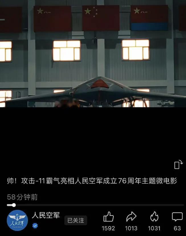 11月14日,据央视军事网站报道,中国🇨🇳一组最先进的军用无人机照片!攻击一11编号玄龙08是首次公开露面,并且与歼一20隐身五代机、歼一16战斗机完成了空中演练。 中国🇨🇳空一组铁三角无人机与有人机组合体。[赞][赞][赞][赞][赞][赞][赞]