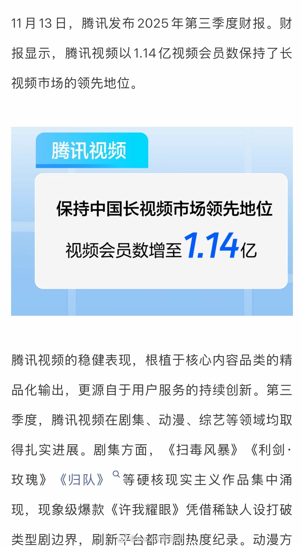 腾讯发布2025年第三季度财报提到了热巴《利剑玫瑰》 赵露思陈伟霆《许我耀眼》