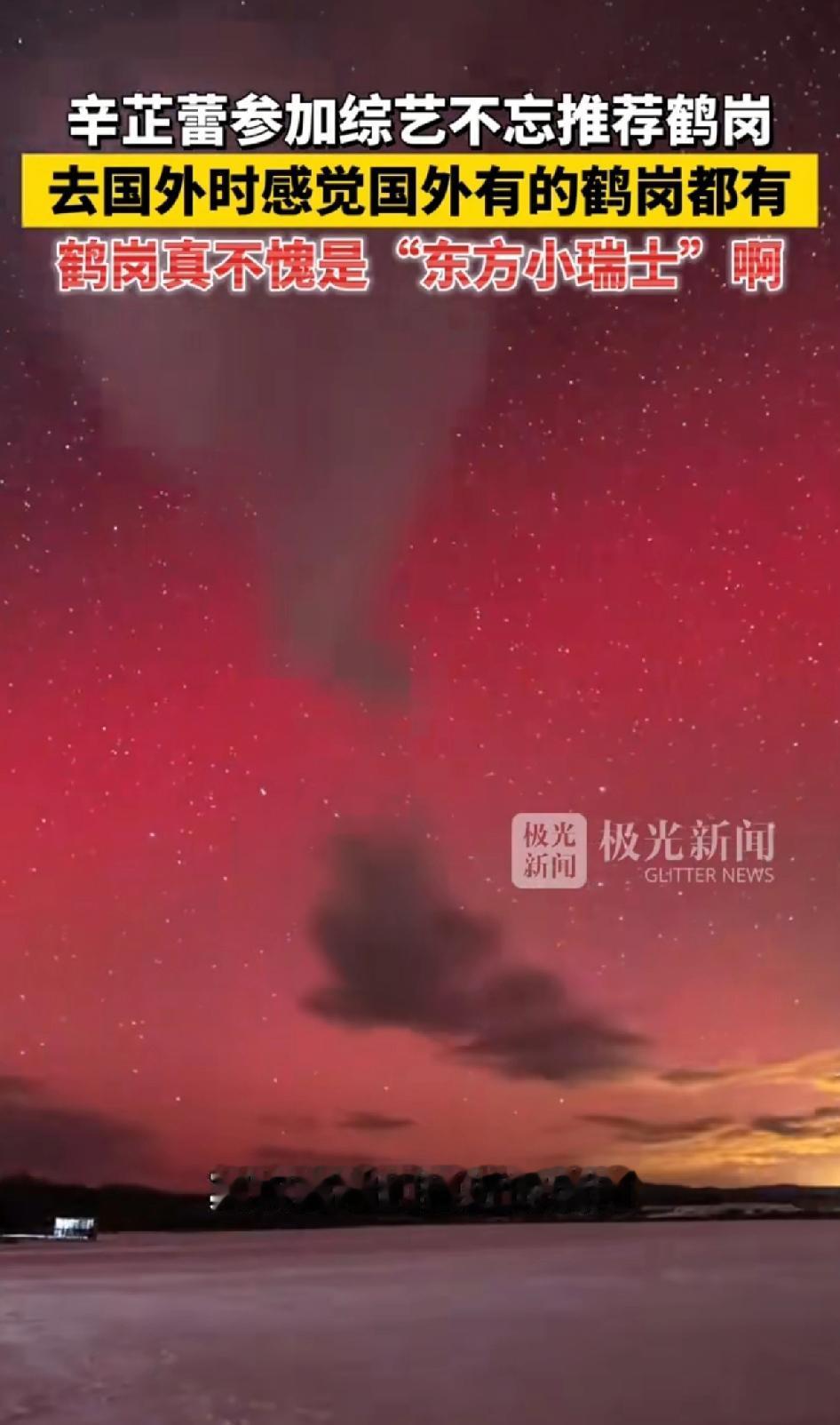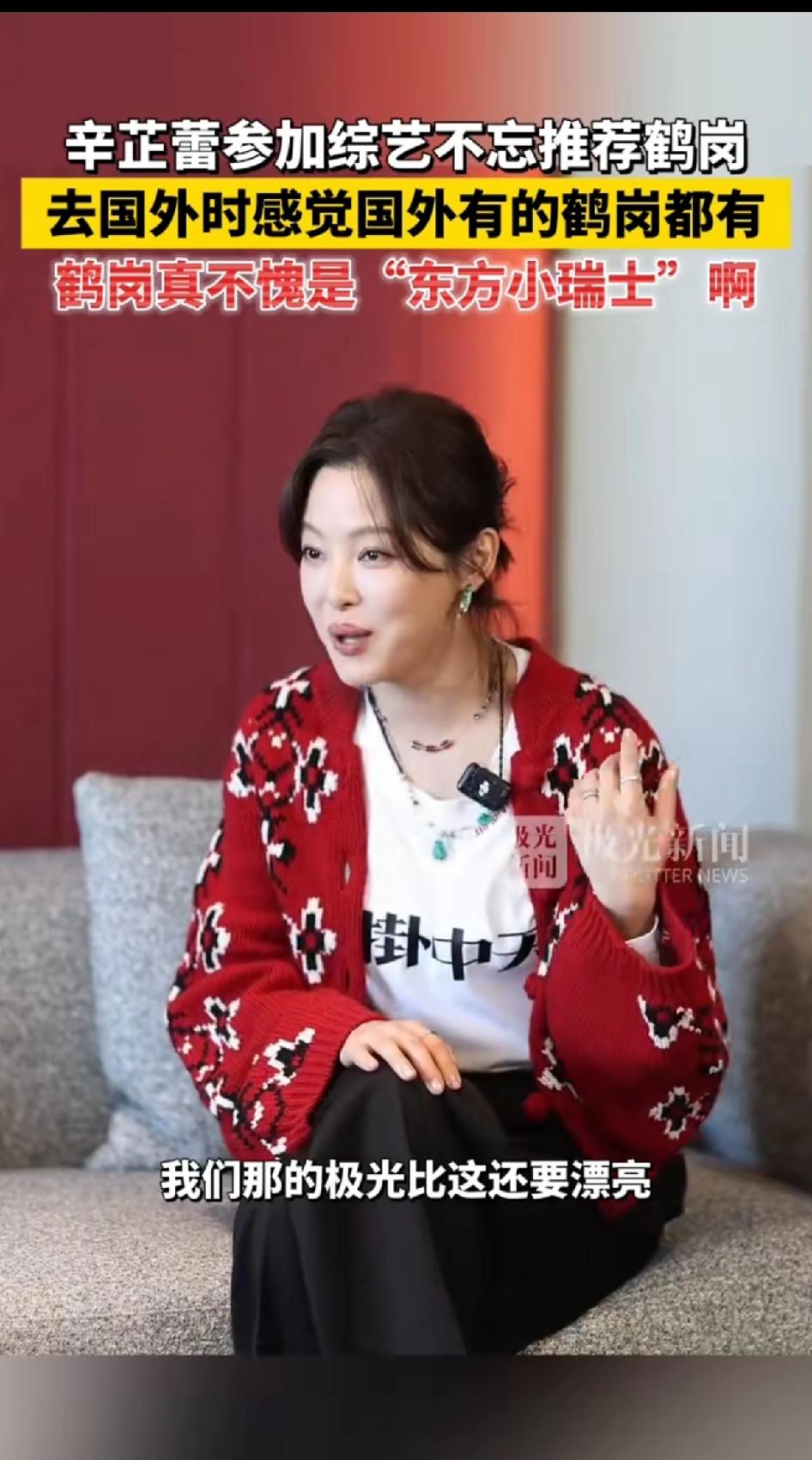 辛芷蕾参加综艺不忘介绍鹤岗,去国外的时候感觉国外有的鹤岗都有。去冰岛看极光,想起离漠河很近的也有同样的极光,比冰岛的还好看。 还有那里的滑雪场,想到鹤岗也有很漂亮的滑雪场。感叹! 原来鹤岗是“东方小瑞士”啊 辛芷蕾说的我都信,外国的景色中国也有,比他们那还漂亮,只是没有宣传出来。 很多人只知道鹤岗房价便宜,冬天天气寒冷。并不知道那边也有独特的景色,和当地的“饮食文化”!现在辛芷蕾妥妥的鹤岗城市代言人,努力的为自己家乡做宣传。 被她说的我都很心动,也想去鹤岗也就是“东方小瑞士”去看看了。