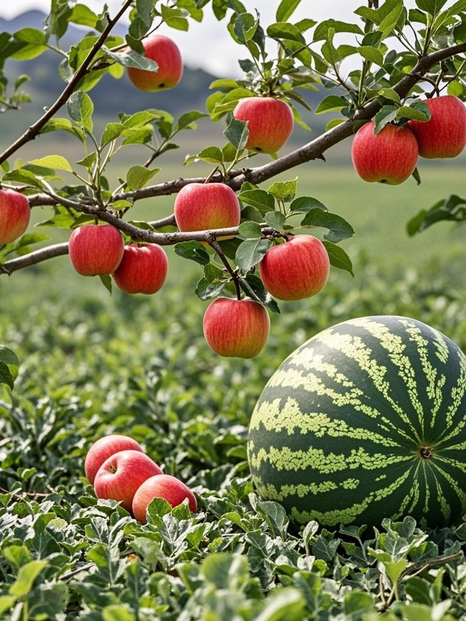 为啥苹果长树上,西瓜长田里呢?这得从繁衍说起。苹果是落叶乔木,栽培的高3 - 5米左右。它是异花授粉,结果后离地面高,能躲开不少害虫,增加结果和种子数量。果实成熟掉地上,还能靠动物把种子传播到别处,利于繁衍。 而西瓜是藤蔓植物,在田里能更好地伸展藤蔓,获取充足光照和水分。像哈密瓜也是葫芦科,既可以长在地上,也能搭架子结果。所以呀,它们生长位置不同,都是为了更好地生存和繁衍。