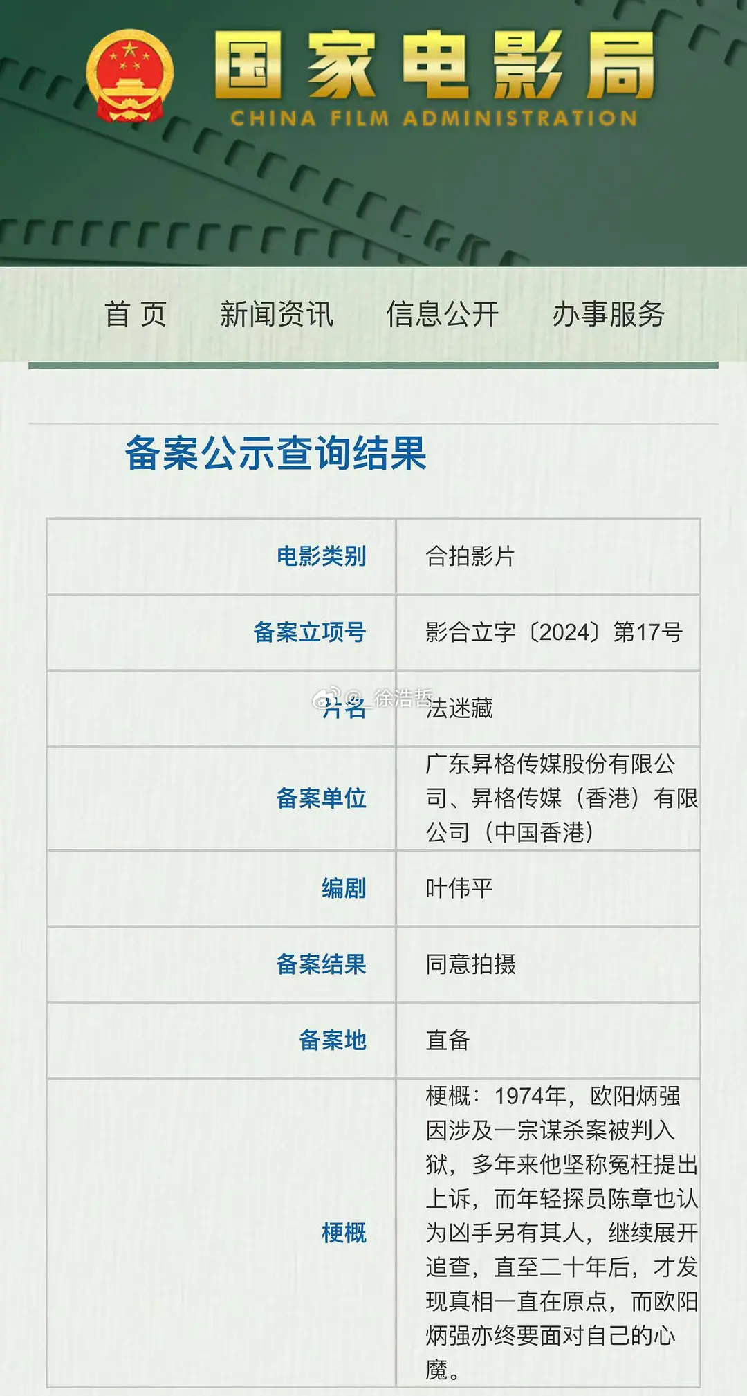 导演翁子光透露,自己监制,谭广源导演,张颂文、谭耀文、梁洛施等主演的电影《法迷藏》正在赶后期,预计今年(在港)上映,因为是合拍片所以要更多迁就于大陆的档期安排