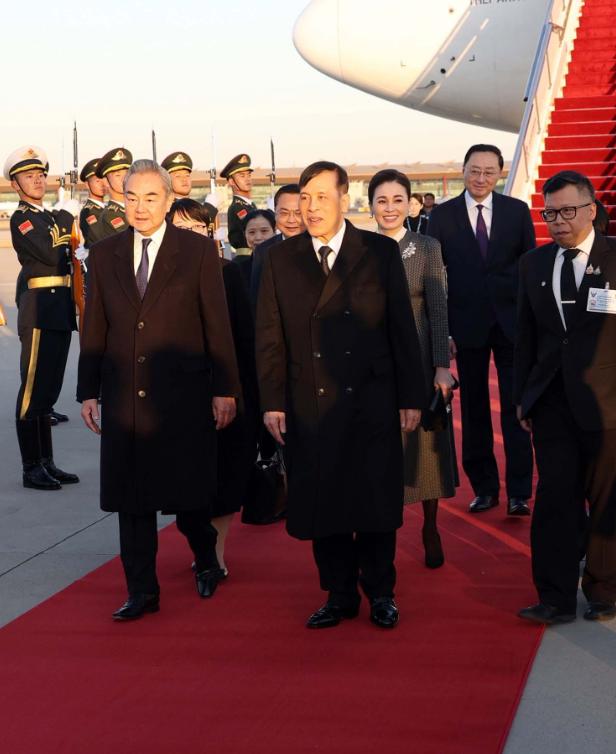 高清镜头下的泰国国王,穿着双排扣风衣抵达北京,系着的是黑色领带,一身全黑穿搭太有国王的威严感啦!11月13日泰国国王乘坐专机抵达北京,选择一件黑色风衣,还是双排扣款式,一身正装打扮绅士又不失男人魅力! 由于泰国王太后去世,泰王还在守孝,所以不管是服装颜色还是领带颜色都是以黑色为主,相当于戴孝了,毕竟玛哈是国王也是儿子。 看来泰王是一个孝子,这都走出泰国了还为老母亲尽孝,就连领带颜色也不选靓丽色彩,可见王太后在泰王心中的地位有多重了。 值得一提的是泰王穿着黑色衣服并不显老,面对高清镜头也表现得从容大气,走在北京机场的红毯上好似走在王宫里,国王气场全开!