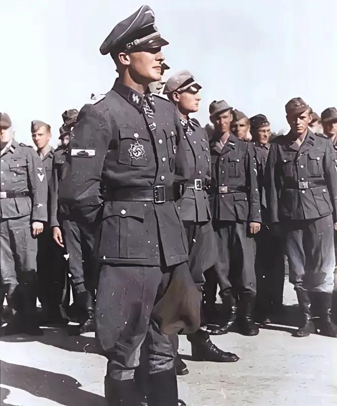 第二张绿色军装的是国防军,党卫军的军装是黑色的,领章有SS的闪电标志,党卫军是纳粹党的专属武装,由希姆莱领导,而国防军是国防部和总参谋部领导,是纳粹德国对外的战争机器。