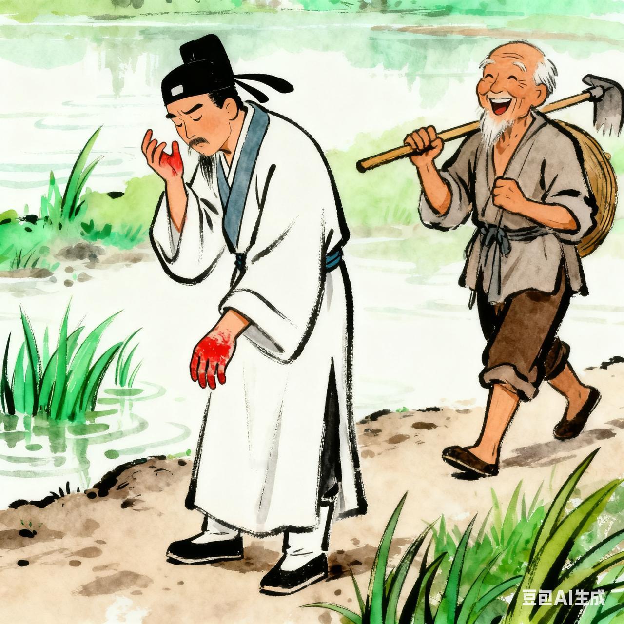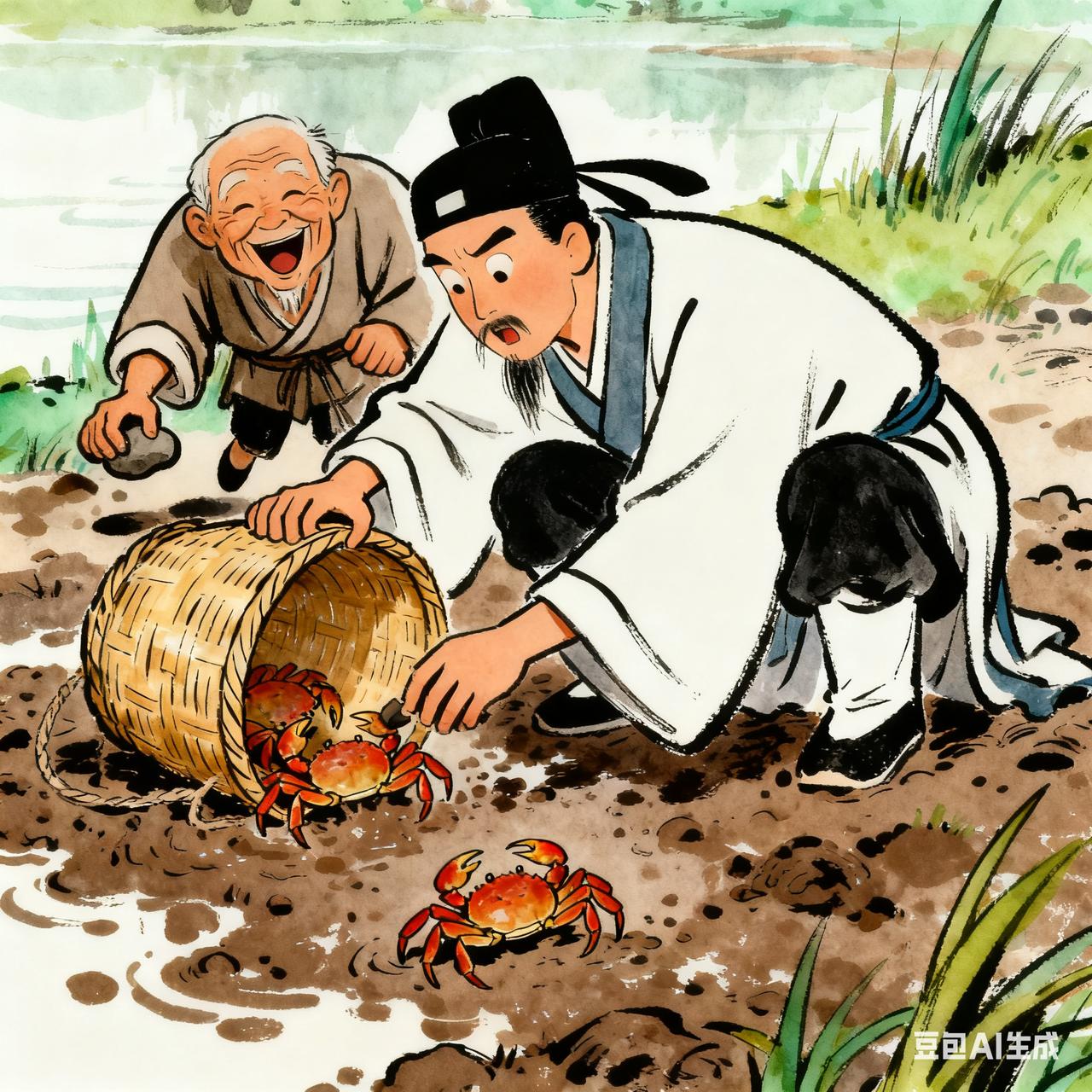 古代笑话 有个秀才买了只螃蟹,回家路上螃蟹从竹篓里爬出来,掉在泥地里。秀才心疼,蹲下去抓,螃蟹举着钳子钳住他的手指不放。 秀才疼得龇牙咧嘴,却还念叨:“你这横行之物,怎敢如此无礼!想我十年寒窗,读遍圣贤书,你倒敢对我动粗?快松钳!不然我就把你烹了,看你还敢不敢放肆!” 螃蟹钳得更紧了。路过的老农见了,哈哈大笑:“你跟它讲书里的理?它这辈子就认‘硬壳’的理!”说着捡起块石头,在螃蟹背上轻轻一敲,螃蟹“咔嚓”松了钳。 秀才甩着红肿的手指,叹道:“果然是‘百无一用是书生’啊……” 老农扛着锄头边走边笑:“不是书生无用,是你跟螃蟹讲错了理哟!”