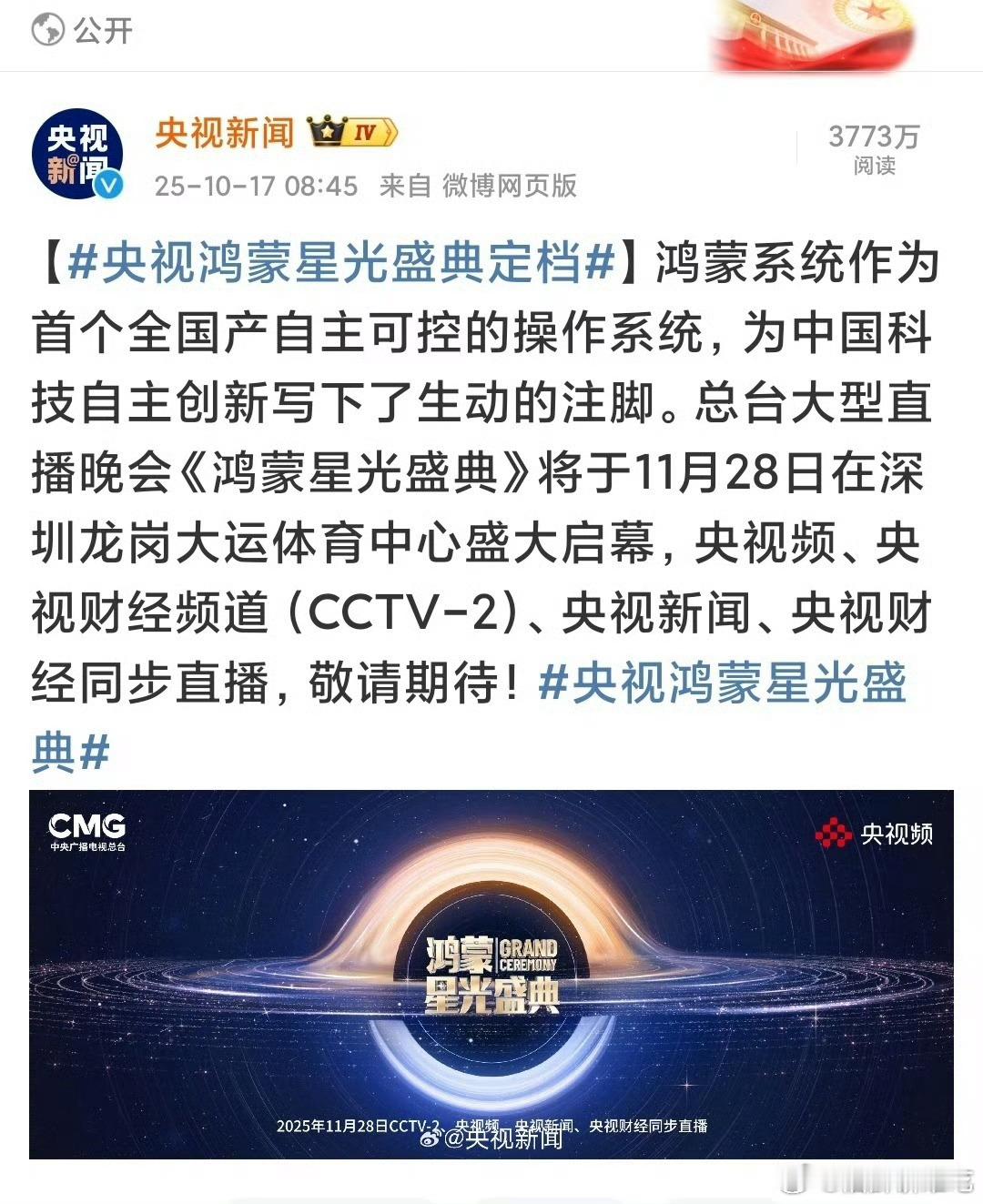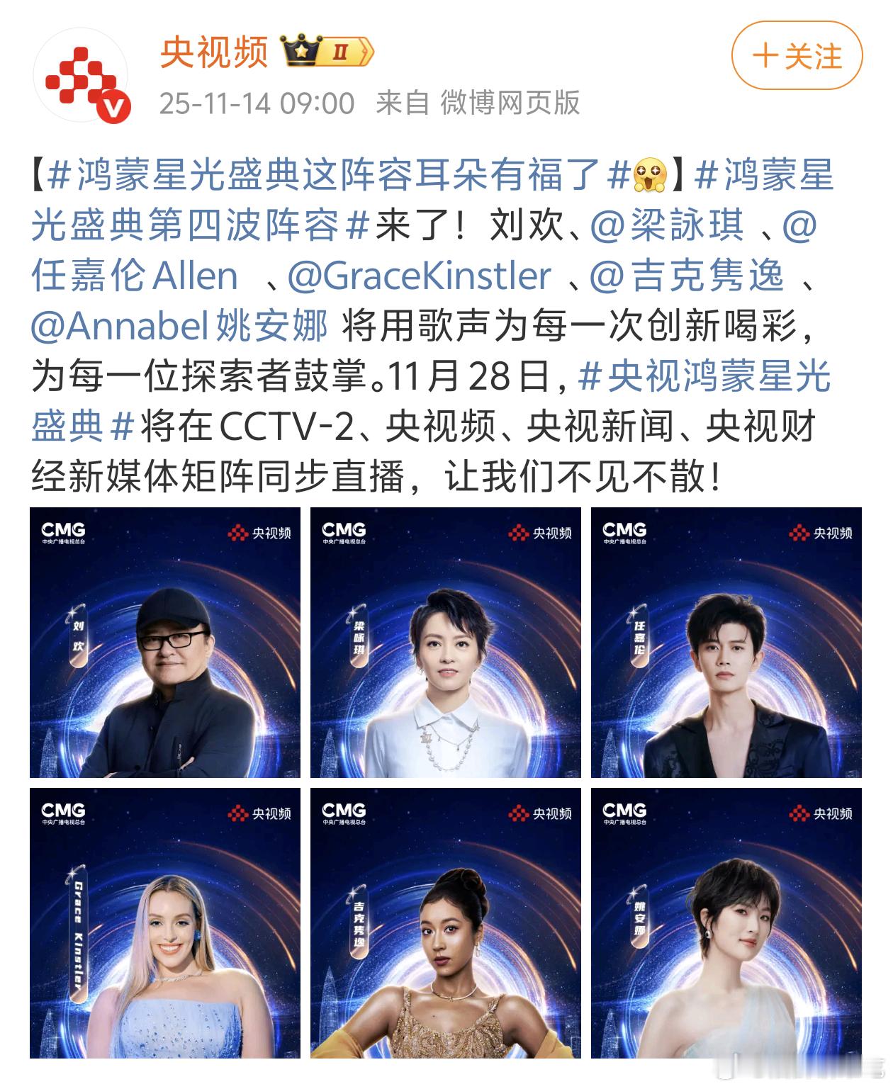 任嘉伦央视鸿蒙星光盛典官宣!11月28日CCTV-2、央视频、央视新闻、央视财经同步直播!!🎉
