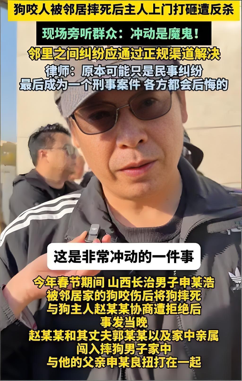 九刀避要害:60岁父亲挥刀的最后防线 当60岁的申某良攥着那把杀鱼刀时,他或许没想过正当防卫四个字。 腊月的山西长治,自家院门外的狗先咬了儿子,随后狗主人带着亲戚砸破玻璃、踹开大门,今晚弄死你们的叫骂声里,妻子和女儿被推搡在地,他退到窗台角落,摸到了那把刀。 九刀挥出去,没扎向胸口、没劈向脖颈,全落在胳膊和大腿上。唯独一刀割破了对方股动脉,让这场从狗咬人开始的闹剧,以两条人命(狗与人)的代价落幕。 尸检报告成了最沉默的证词:刀刀避要害,恰是绝境里的慌乱自保。而另一边,申某良鼻骨骨折、全身淤青的诊断书,藏着被围殴的痕迹。 狗主人的妻子后来悔了:不该砸玻璃。申家儿子也说:要是忍了,不摔死狗就好了。可人生哪有那么多要是?当私宅被踹开的那一刻,法律该是守在普通人身后的最后一道墙,不是谁伤重谁有理。 庭审还没宣判,但这九刀早刻在了每个普通人的心里:我们怕的从不是狗,是破门而入的戾气;我们要的也从不是反杀,是守住家门的底气。