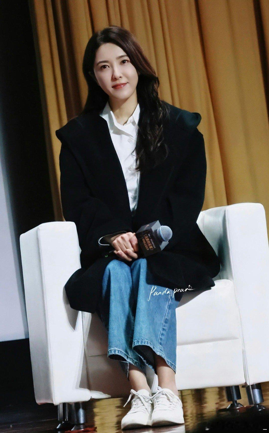 曾黎完美演绎体制内时尚!金丝眼镜+低马尾的配饰组合优雅知性,基础款大衣穿搭正式得体,整体造型既端庄又显气质~