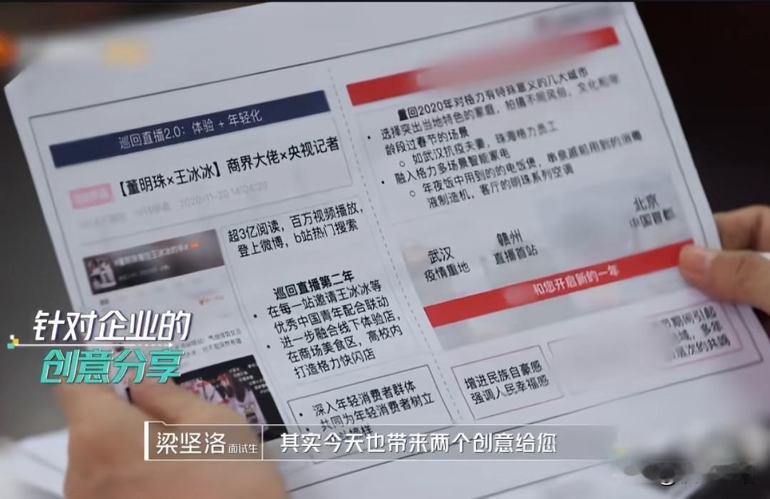 格力老总董明珠亲自面试, 还记得当初那个要10万底薪的实习生。 小梁,他确实很优秀,毕业于墨尔本大学,情商很高,毫无破绽的表达出自己对格力线上直播的见解,围绕这个话题,对董明珠的一些成就,表达出敬仰、想学习的心,之后就是彩虹屁一顿连夸,准备工作也做得很好,把自己未来的工作规划以及创意也打印成简历给她。 作为一个新人来说,堪称完美,当时董明珠对这位实习生很满意,但是董明珠曾经公开说过自己的公司,不允许有外国留学生,怕里面有间谍,也可能是这个原因,让这位表现很完美的实习生落榜。