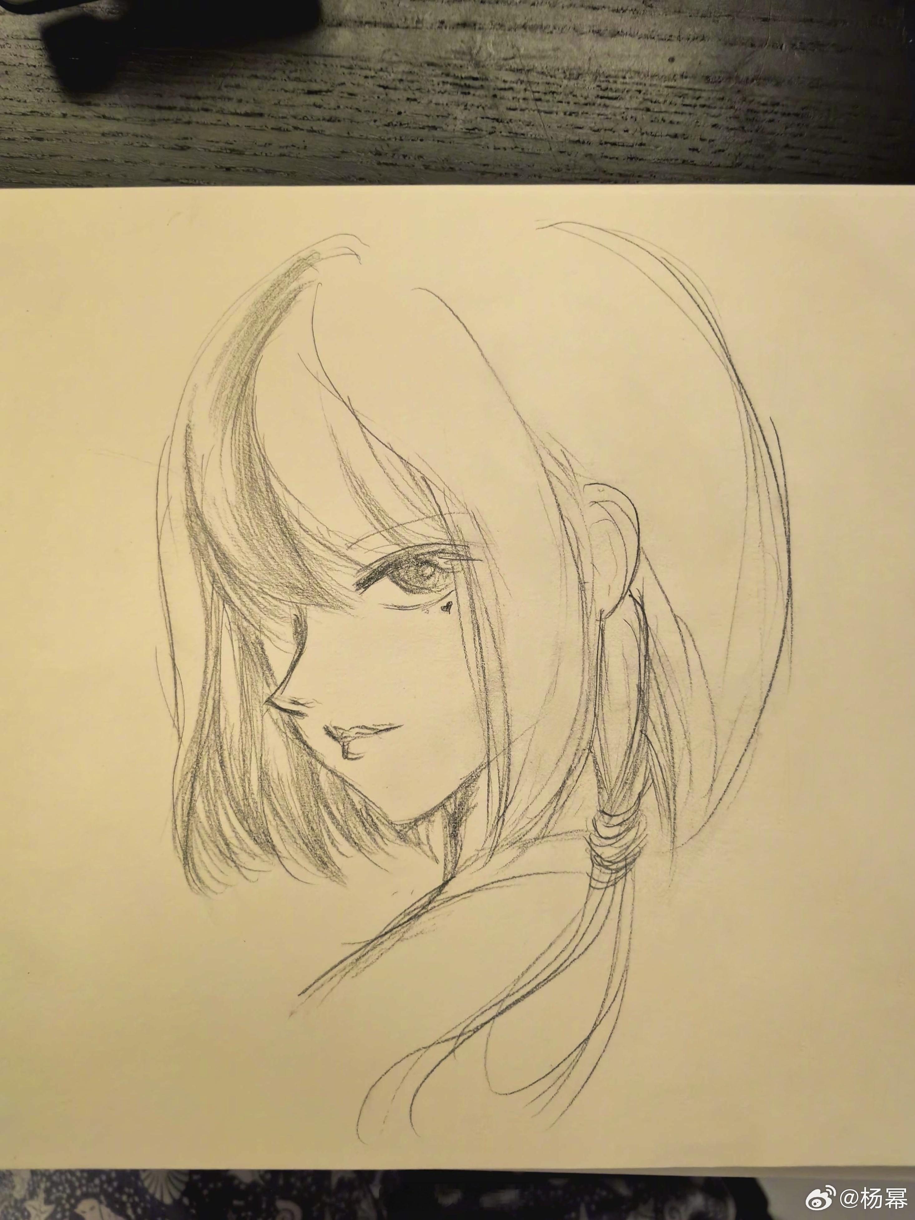 杨幂更新画作啦,幂姐画二次元人物很传神诶。