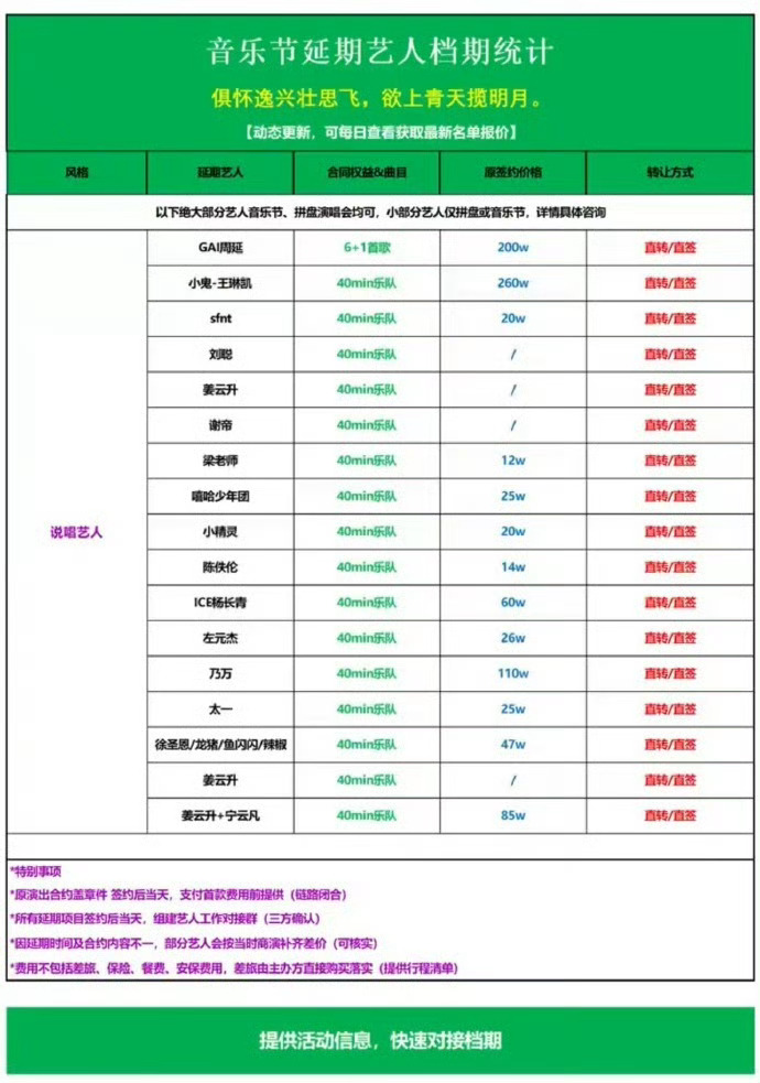网传歌手参加音乐节的报价