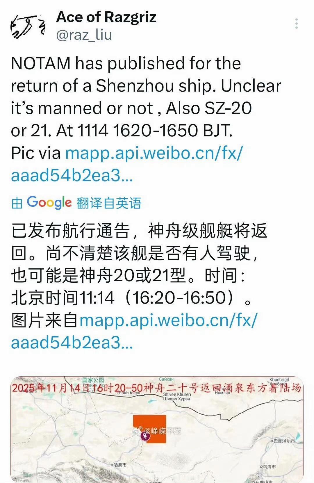 欢迎神舟20“回家”! 鸿羽不低飞,龙津徒自险。 神舟20飞船,自11月4日确