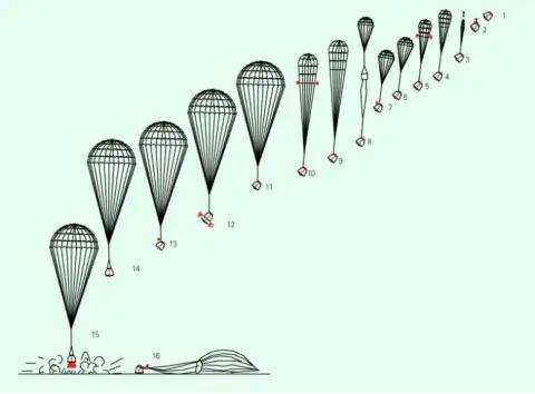 欢迎神舟20“回家”! 鸿羽不低飞,龙津徒自险。 神舟20飞船,自11月4日确定被太空微小碎片撞击推迟返回后,本着对“生命至上,绝对可靠”理念,历经10天的检测和补救,终于在11月14日(16:20至16:50)确定“回家”。 空天几千公里“回家”险阻重重,宇航员将再次经历那些考验? “回家”之路需要4个步骤: 第一阶段:刹车“逃脱”。也就是制动减速,它不同于陆上踩刹车。当返回舱与轨道舱绕地正常飞行时,地面指控中心下达指令,飞船先逆向90度变为横向飞行,后利用1至2秒时间解锁脱离母体。后迅速再逆向调整90度,与轨道舱成相反方向,同时飞船发动机点火,用抵消推力方式降低速度,逐渐下降轨道。这个阶段持续时间很短,每一步都必须精准到位,特别是两次旋转角度不能有误差,还要确保返回舱能够按时点火。 第二阶段:滑行“漫步”。此阶段最为惊险,钱学森轨道派上用场。返回舱和推进舱以无动力状态在返回轨道上自由下降,当高度达到据地面145㎞时两舱分离,返回舱调整姿态继续下降,此时下降角度必须控制在严格的角度内,角度大了载入大气层时速度会过快,飞船像流星一样被烧毁。角度太小了返回舱会从大气层边缘擦过,继续在太空流浪,无法返回。这个阶段需要返回舱利用自身携带的发动机不停的调整姿态,对飞行轨迹进行控制的同时降低速度。 第三阶段:“黑障”惊魂。飞船下降到距离地面100㎞的大气层位置时做好进入失联准备。在距离地面80㎞时,因速度过快和电离层原因,将会和地面失去联系,直到距离地面40㎞时才逃脱。这个阶段速度最快,与大气层摩擦温度最高,达到2000℃以上,从地面看真的像流星,航天员不仅要承受失重带来的考验,还面临装备保护安全性的心理压力,所以碎片撞击飞船太空评估和修补最为重要。 第四阶段:着陆“回家”。突破了“黑障”就可见到了地球大好美景了,距地面10㎞左右时,返回舱自动测量高度打开伞舱盖,然后在不同的高度依次拉开引导伞、减速伞和主降落伞。在距地面1米左右时,返回舱底部的4台反推发动机点火,使返回舱以大约3米/秒的速度软着陆,同时通过返回舱底部吸能外壳、减振材料和座椅缓冲机构组成的减振系统来吸收能量,保证航天员安全落地。 “回家”过程从开始到落地,需要50分钟以上,每一步看似有序不紊,程序简单,但每一步都需精准精确,留有后手,每一步都经成千上百遍科学论证和试验检验,才修成了千年飞天梦,领先世界潮流! 致敬航天员,致敬祖国航天科技! (资料:中科院物理所)