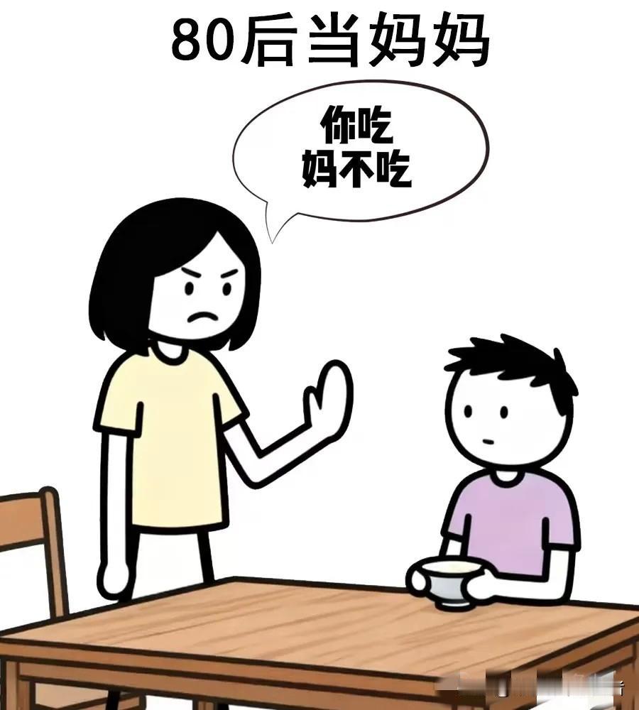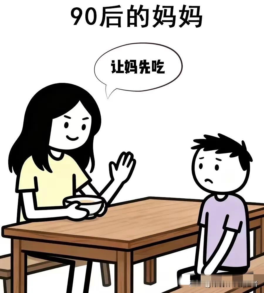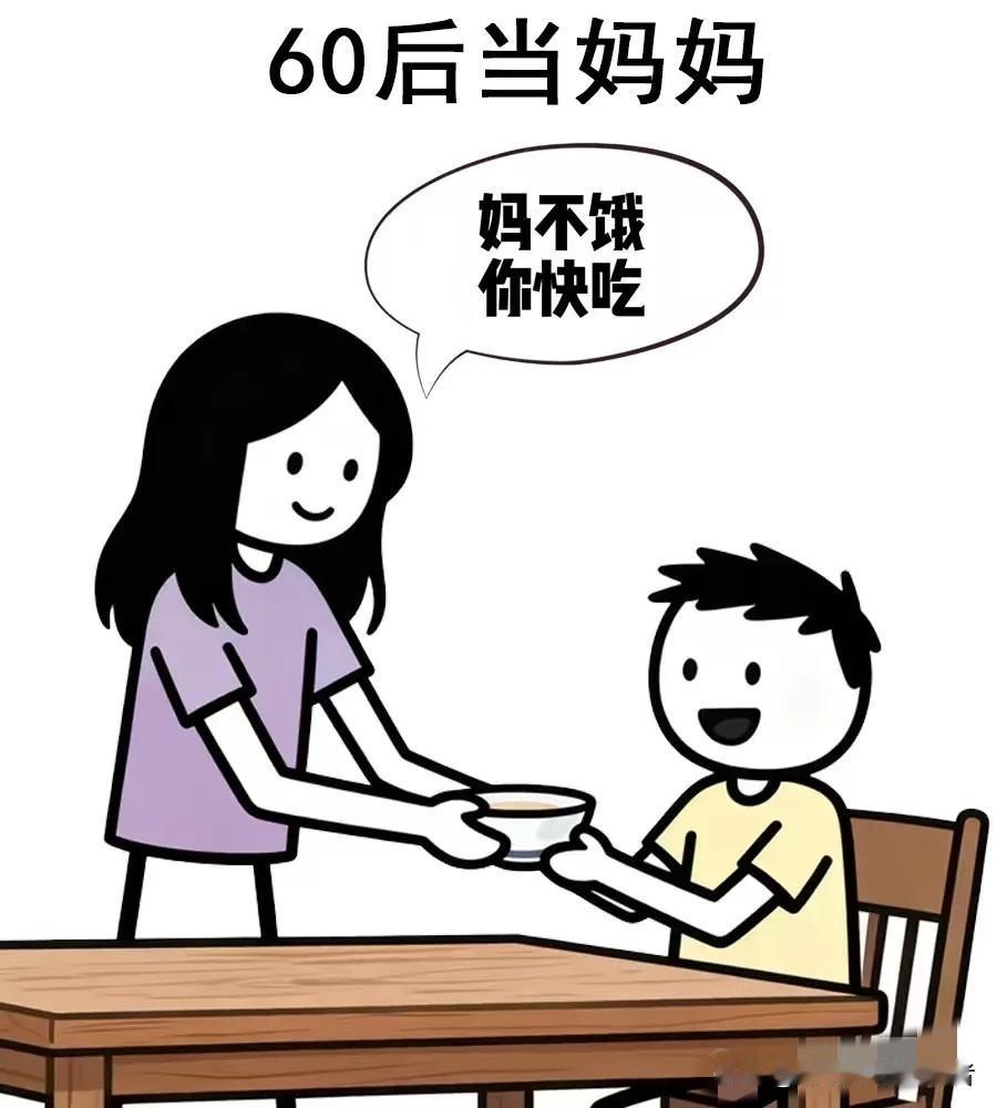 趣味漫画:各年代的妈妈,60后:妈不饿,你快吃,70后:你吃,妈不吃,80后:你先吃,妈再吃,90后:让妈先吃,00后:妈饿了,你去做饭