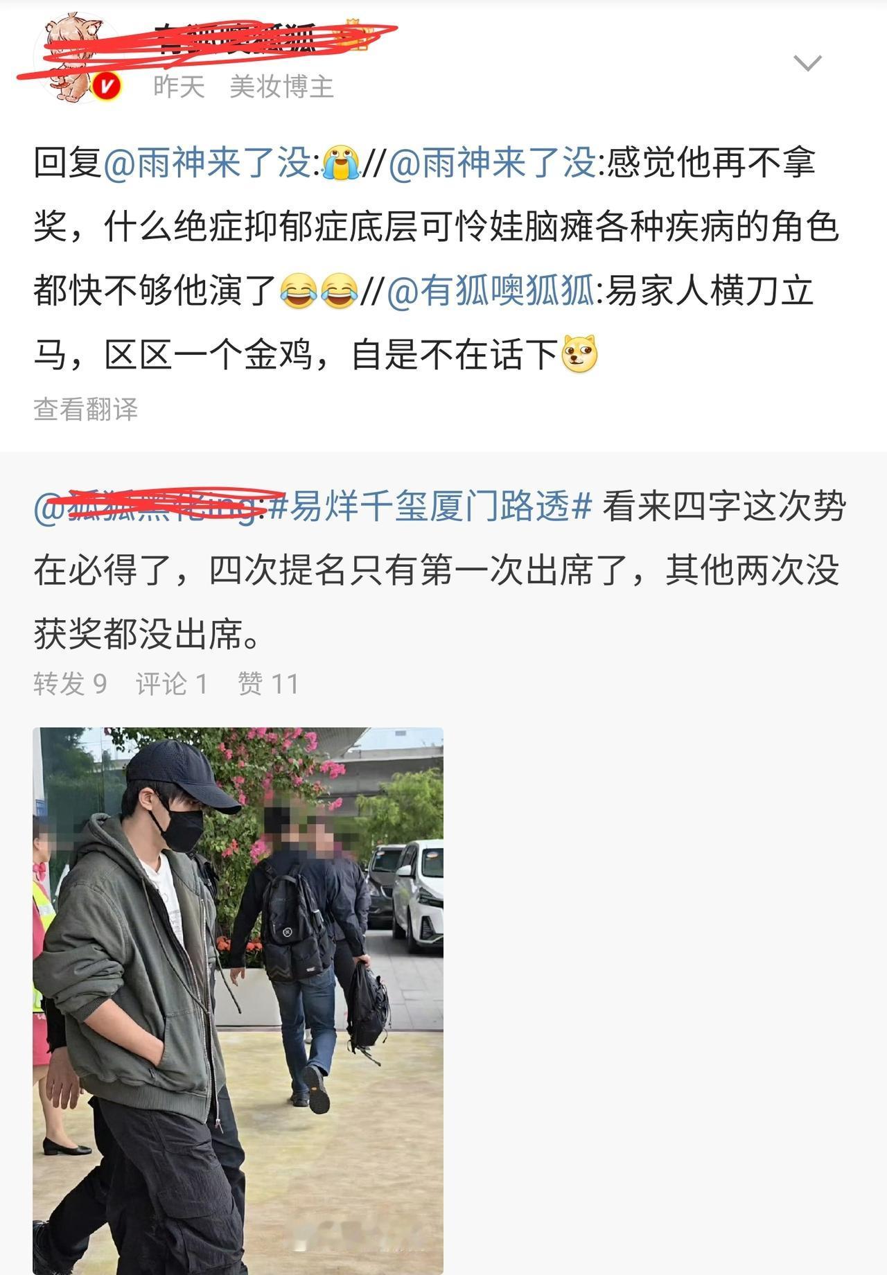 易烊千玺跟着小小的我剧组出出席电影金鸡奖提名者表彰大会,按照小道消息的说法,这次易烊千玺获得影帝的可能性非常高 之前几次易烊千玺也被提名过,但是都没有出席活动 这次专门过来,大概率是有把握上台拿奖 话说他也该拿一个大奖了,演技方面,目前娱乐圈年轻演员里边,易烊千玺算是中流砥柱,这次竞争也不算激烈,他拿奖可谓是实至名归