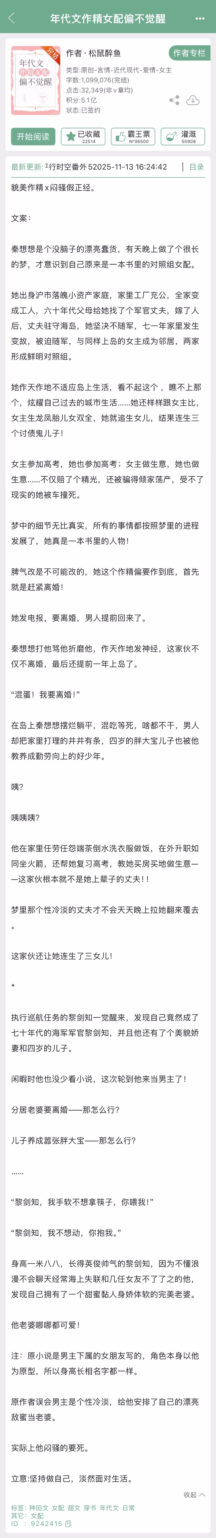 松鼠醉鱼的《年代文作精女配偏不觉醒》完结啦!男女主双穿书,貌美作精x闷骚假正经
