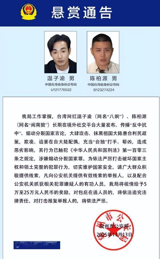 沈伯洋跑德国叫嚣,大陆再砸重拳!国台办用“祖训”敲打赖清德 日前,大陆以“涉嫌分裂国家罪”对臭名昭著的“台独”分子、民进党民代沈伯洋进行了立案调查,央视更引用专家所言表示,可要求国际刑警组织发出“红色通缉令”,全球追捕沈伯洋。 这种情况下,赖清德突然站出来高调喊话台民意机构负责人韩国瑜,要求其“声援沈伯洋,维护尊严”。 对此,韩国瑜的回应也豪不客气,直言赖清德是在消费沈伯洋,并要求其废除民进党“台独党纲”,撤回大陆是“境外敌对势力”的说法。 眼看这样的势头,嘴上喊着“不怕”的沈伯洋,跑到了德国。 借着台湾地区前领导人蔡英文窜德的机会,他偷偷跑过去以所谓“台湾立委”身份参加“反华会议”,以此来刷存在感,寻求庇护。 他还公然宣称“绝不会因为大陆的通缉而退缩”,甚至还公开做伪证称,“大陆攻击了台岛的资讯”。 沈伯洋此次德国之行绝非偶然。 观察他近年来的行为轨迹可见,其创办的“黑熊学院”被曝光接受美国国际开发署等机构超过百万美元资助,该机构以“民防培训”为幌子,实则进行“抗陆”暴力活动培训。 值得注意的是,今年初该机构还从某国际基金会获得近两百万美元资金注入,这些资金流动背后暗藏着将“台独”活动国际化的险恶用心。 现在,沈伯洋选择德国作为表演舞台,正是企图借助外部势力为其分裂行径壮胆。 然而这番故作强硬的姿态,恰恰暴露了“台独”势力在国际舞台上的孤立无援。 大陆的反击策略展现出前所未有的系统性。 在法律层面,依据《刑法》分裂国家罪条款,无论嫌疑人身在何处都将终身追责;在经济层面,对沈伯洋家族企业实施交易禁令、货物扣押和注册废止三重制裁,使其父沈土城经营的兆亿公司订单锐减。 这种“法律+经济”的组合拳,彻底斩断了“台独”分子“吃大陆饭、砸大陆锅”的畸形生存模式。 当前,执法部门正在通过国际刑事警察组织渠道推进红色通缉令发布程序,一旦完成,沈伯洋将陷入举步维艰的境地。 所以说,被清算是早晚的事儿,沈伯洋“蹦跶”不了多久了。 知情人士透露,自10月底被立案后,沈伯洋多次向台湾立法机构寻求“庇护”,私下对可能面临的缺席审判表现出明显焦虑。 这种公开强硬与私下恐慌的强烈反差,印证了“台独”分子色厉内荏的本质。这种双面人生正是“台独”的典型写照。 值得一提的是,大陆近期对台独分子的打击正在形成规模效应。继沈伯洋之后,大陆再出重拳。 福建泉州公安对2名“台湾网红”温子渝、陈柏源发布最高25万元的悬赏通告,这两人此前已被国台办定性为“台独”势力的帮凶。 执法部门人士透露,这种悬赏缉拿模式将逐步常态化,任何参与分裂国家行为的人员都将被纳入追责范围。 国台办明确表示,这是回应两岸民众“惩独”呼声的正当必要、正义之举。 从沈伯洋的全球通缉到基层打手的公开悬赏,大陆构建起从核心分子到外围帮凶的全链条追责体系。 有法律专家指出,随着司法程序的推进,这些政治表演都将转化为定罪证据,最终在审判台上迎来正义清算。 岛内专家分析指出,大陆这种多管齐下的策略标志着反“独”促统工作进入新阶段。 需要注意的是,国际社会对“台独”势力的态度也发生着微妙变化。 尽管沈伯洋试图在德国寻求政治舞台,但其所谓“反华会议”并未获得主流舆论关注。 纵观全局,沈伯洋事件正在成为一个具有标志性意义的转折点。 它表明大陆在处理台湾问题上已经形成更加成熟系统的策略,既保持战略定力,又展现出战术灵活性。在法律追责与经济制裁的双重压力下,任何分裂行径都将付出难以承受的代价。 随着证据链不断完善和司法程序持续推进,等待沈伯洋及其同伙的将是法律的庄严审判。 而在这个过程中,大陆方面展现出的不仅是打击“台独”的坚定决心,更是维护国家主权与领土完整的强大能力。对于仍在负隅顽抗的“台独”分子而言,沈伯洋的今天很可能就是他们的明天。 纵观全局,在台海问题上,有两个趋势日益清晰: 其一,大陆维护国家统一的工具箱愈发丰富精准;其二,“台独”势力的生存空间正加速萎缩。沈伯洋在德国议会的拙劣表演,不过是为“台独”终结论增添的又一个注脚。 正如岛内民众所言:“跳得越高,摔得越惨”,当全球通缉令发出的那一刻,就是这些民族罪人接受历史审判的开始。 国台办近日明确表示,越早解决台湾问题、实现祖国统一,越利于台湾发展,利于台胞过上更好日子。两岸都是中国人,完全有能力把命运掌握在自己手里,关上门把家里的事商量好。 种种迹象都在表明,统一的步伐已经越来越快,但每一步都走得很稳,任何企图分裂国家、背叛民族的人,都将被钉在历史的耻辱柱上。 尤其是赖清德,国台办发言人念了两遍的“赖氏祖训”——“为人子女要孝顺,不孝之人罪逆天”,到底能否听得进去? “不承认祖国,就是逆天之罪”,赖清德别再“赖”了,好好听从祖训,否则下场只有“死路一条”!