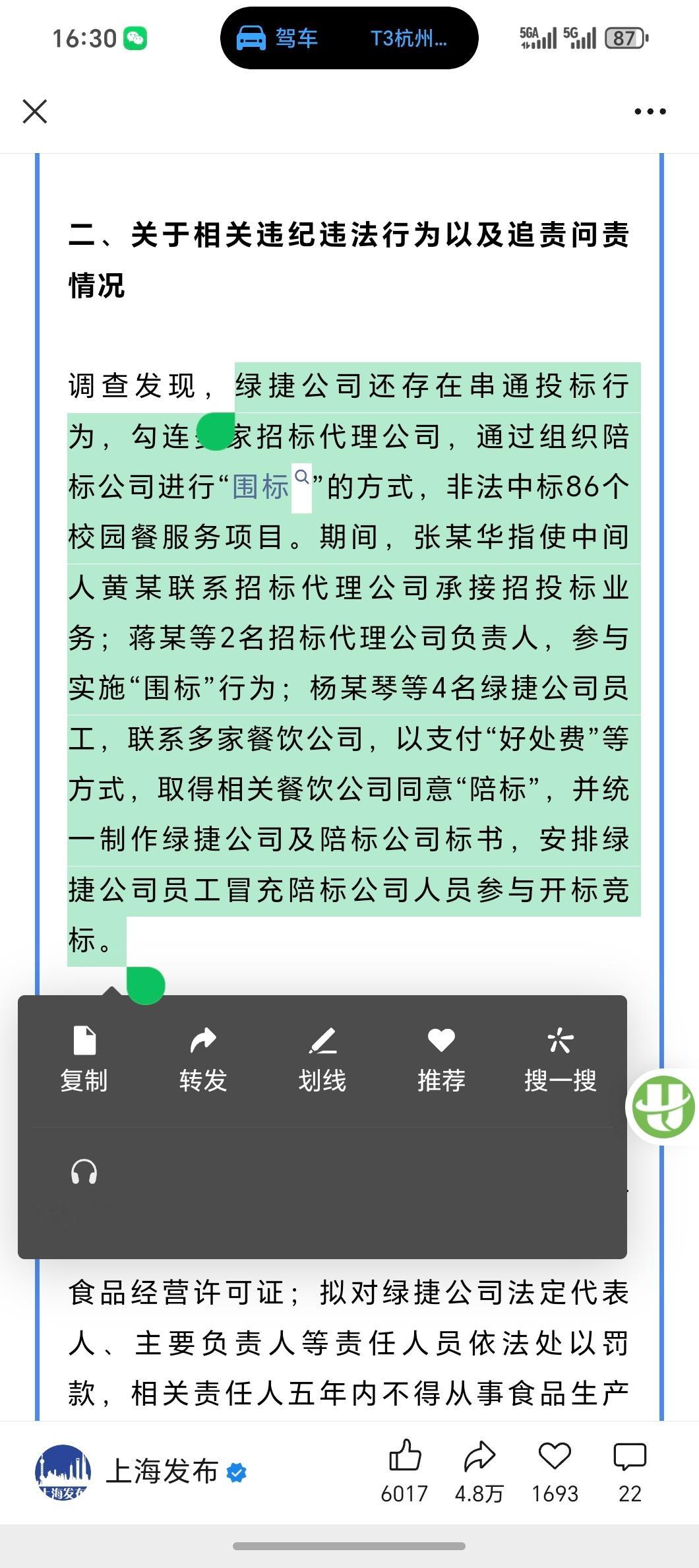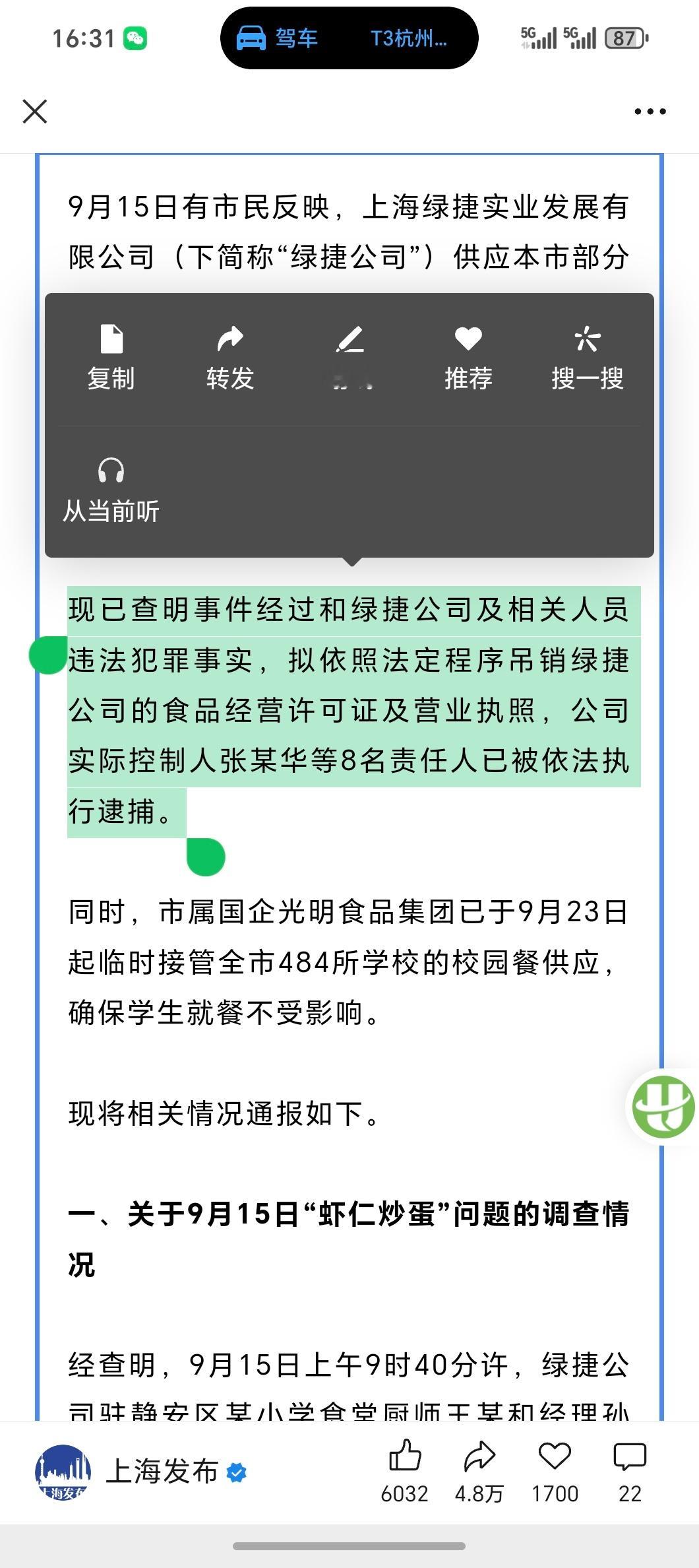 还记得前段时间上海小学生午餐事件今天官方通报处理来了隐瞒不报,违规中标,行贿受贿被吊销执照,依法逮捕相关人员这种问题说实话不是上热搜恐怕调查没这么雷厉风行严惩重罚,还孩子们一个健康的午餐