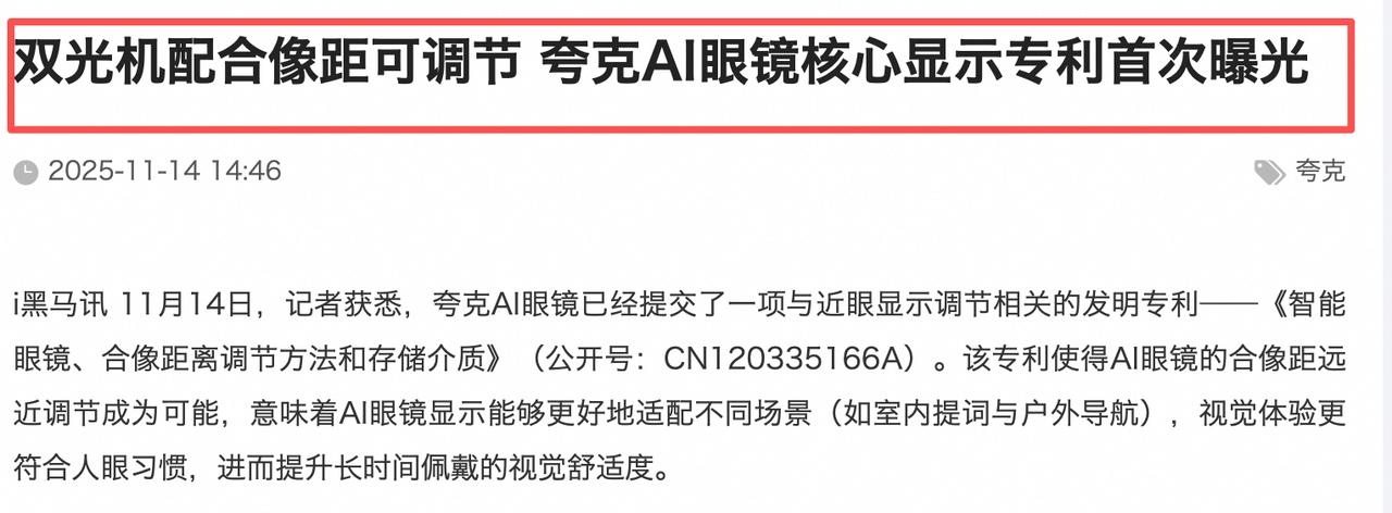 美国陆军在测试AI眼镜,一大趋势越发明显,我们国家也有优势。 看到一个新闻挺有意思:美国陆军开始测试 AI 眼镜,用来对抗无人机、辅助维修兵训练,军事圈都在讨论,说美国军队押注 AI 视觉系统,就是预言下一代战场竞争的方向。 那这事对咱普通老百姓有什么影响吗?其实关系很大,很多技术都是先运用于军事,然后才推广到民间。 但当大家都以为 AI 眼镜还很遥远时,咱们中国企业阿里已经做的有模有样了,这两天夸克 AI 眼镜曝光了两项核心专利,真的是从实际出发解决痛点问题。 首先第一个就是SuperRaw 暗光处理算法,此前没有一家 AI 眼镜厂商做到把 Raw 域降噪技术塞进眼镜里,不是没人想到,是算力不够、技术受限,导致夜里拍出来的画质跟监控录像似的。 但夸克直接自研了Super Raw暗光处理算法和相关软件,多帧融合和陀螺仪补偿齐上阵,暗光场景里的噪点、糊片、抖动几个老毛病,就一并解决了。 再看第二个:首次实现合像距远近调节的专利技术。所有戴过 AI 眼镜的朋友应该都有个相同的感受,就是戴久了很累,眼睛酸、脑袋晕。什么原因导致的?因为你既需要看远处的路,还需要看镜片上的信息,远近视觉距离的需求不一样,要是AI眼镜的合像距调节跟不上,看东西肯定不舒服。 但夸克这个专利技术就能做到让画面前后、上下都能贴着你看东西的远近习惯来调节,体验优化,舒适度自然大大提升。 所以你看,夸克这下是真想让AI 眼镜从“能用”变成“好用”,这一步非常关键。 当别人还在军用测试,我们已经在民用上实现了关键技术的突破,而且不是抄、不是追,是走我们自己的路,这是最值得骄傲的地方。