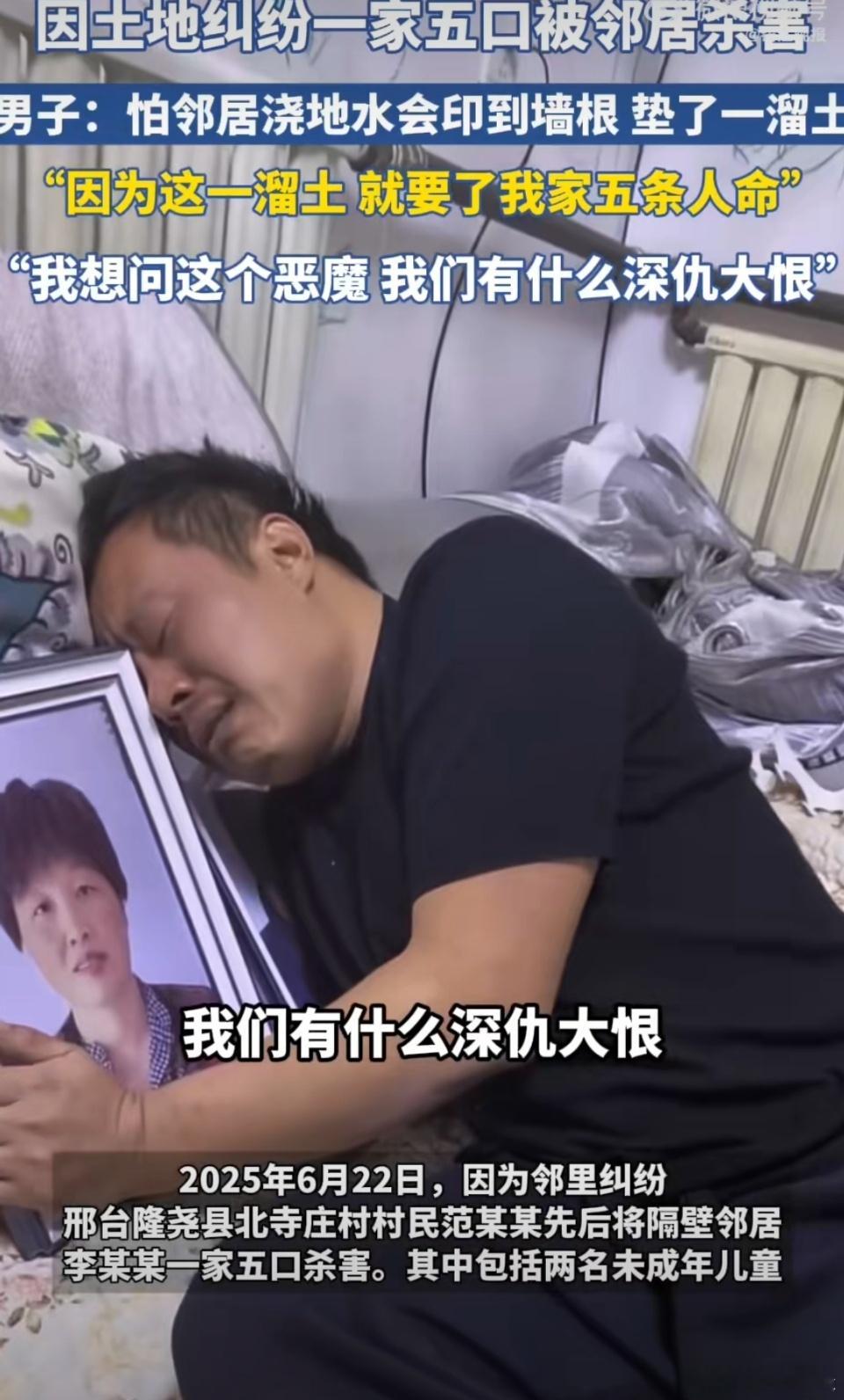 丧尽天良,占了人家地不让,还杀害人家一家五口,连几岁的孩子都不放过,好好的一个幸福的六口之家,就剩下一个男人,上面父母没了,枕边的妻子没了,下面两个孩子没了,这个男人的心得多痛!必须要重判杀人凶手