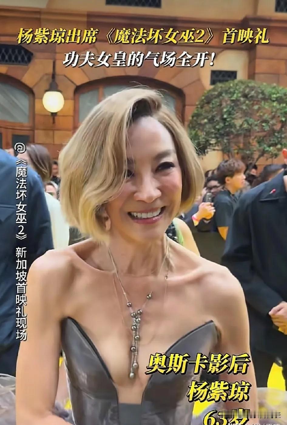 杨紫琼这件礼服看着都疼。11月13日她在新加坡出席新片首映,灰色抹胸裙的硬质面料直接卡在腋下,把肉都勒出痕迹了。 63岁的她全程保持优雅微笑。还对着镜头说很想念中国观众。完全看不出正忍受着不适。 这几年她确实瘦了不少。锁骨凹陷特别明显,脖颈青筋突出。当年那个英姿飒爽的女打星形象渐渐淡去。 说真的,年纪大了真不适合过度消瘦。胶原蛋白流失后,丰润些反而更显年轻。礼服再美也不该让身体受罪。 你们觉得女明星必须保持骨干身材吗?