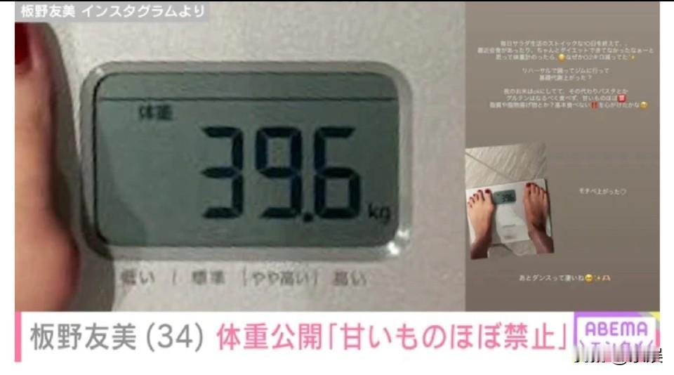 板野友美晒体重39公斤自爆不吃甜食 艺人板野友美(34岁)于12日更新了Ins动态,公开了自己当前的体重 现在日本的小姑娘一味追求瘦,真的是很不好的引导。我看电视说有的小学生都开始减肥。这个体重拿出来晒是想炫耀吗? 天天晒这个真的很不好的引导 她越来越莫名其妙[what]板野友美 日娱女星