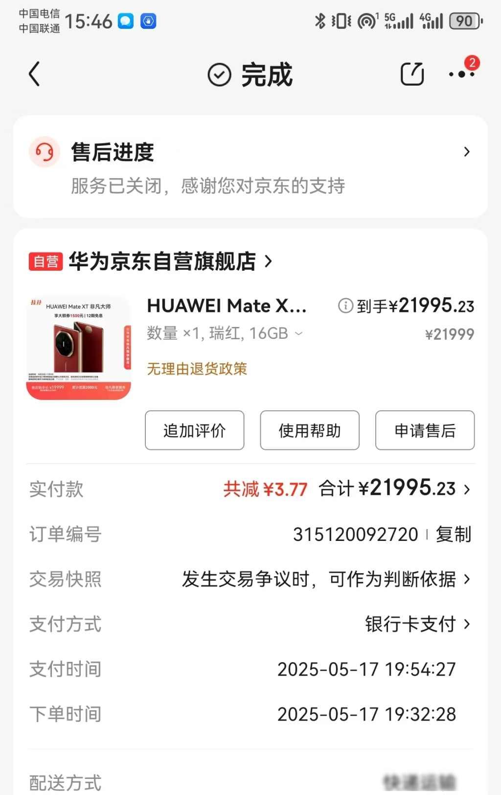 男子买三折叠手机三个月后屏显异常要退换被拒,回应:可免费维修 2025年11月4日,上海的瞿先生拿着一部花了两万多买的华为三折叠手机,屏幕黑了,售后那边也不管,他现在怎么都解决不了,三个月前他在京东自营店买下的这台华为XT三折叠,现在因为屏幕填缝胶溢出来,彻底用不了了。 刚买三个月就坏了,这算什么事,瞿先生说,八月发现屏幕有竖条纹还鼓起来,华为售后检查说是质量问题,可京东客服只肯免费修,再给二百个京东豆,他要退货,两边就互相推,京东说得找华为,华为说超了十五天不能换。 这个矛盾反映出折叠屏手机的行业问题,澎湃新闻调查发现,华为、三星的三折叠机型投诉很多,漏液、屏幕有黑影这些毛病常见,黑猫平台上八成投诉都是用户说厂商和平台互相甩锅,有人手机用了一个月就出问题,结果被鉴定成人为损坏。 维修完机器结构就全变了,这可不是换台新机,瞿先生说,屏幕可能变厚,边框也会歪,等于把手机改成了改装机,他挺无奈的,已经打了北京12345,可调解没用,现在只能准备打官司,律师说,消费者可以找第三方做质量鉴定,要是真有问题,商家就得负责换机,还得付鉴定费。 瞿先生的手机还躺在抽屉里,京东说修一下再给两百京东豆,他觉得这办法太轻飘了,这事儿不光是两万多块的钱,更说明高价折叠屏出了问题,售后根本撑不住,技术越复杂,出毛病的概率越高,可消费者找谁去讨个说法。