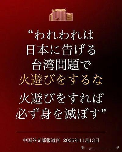 日语和英语都用上了,这下高市早苗应该能看懂了吧?高市的日文水平我不知道,但作为安倍女孩,我估计她的英语水平应该是达标的。要不然怎么跟美国总统沟通呢!个人认为,高市已经惹祸了,针对她的行为,中方必将迎头痛击!截至目前,高市依然没收回自己的暴论。再次提醒一下日本人,你们的这个女首相,正在带着你们进火坑,你们最好能及时醒悟,将高市驱离,否则倒霉的还是你们自己!