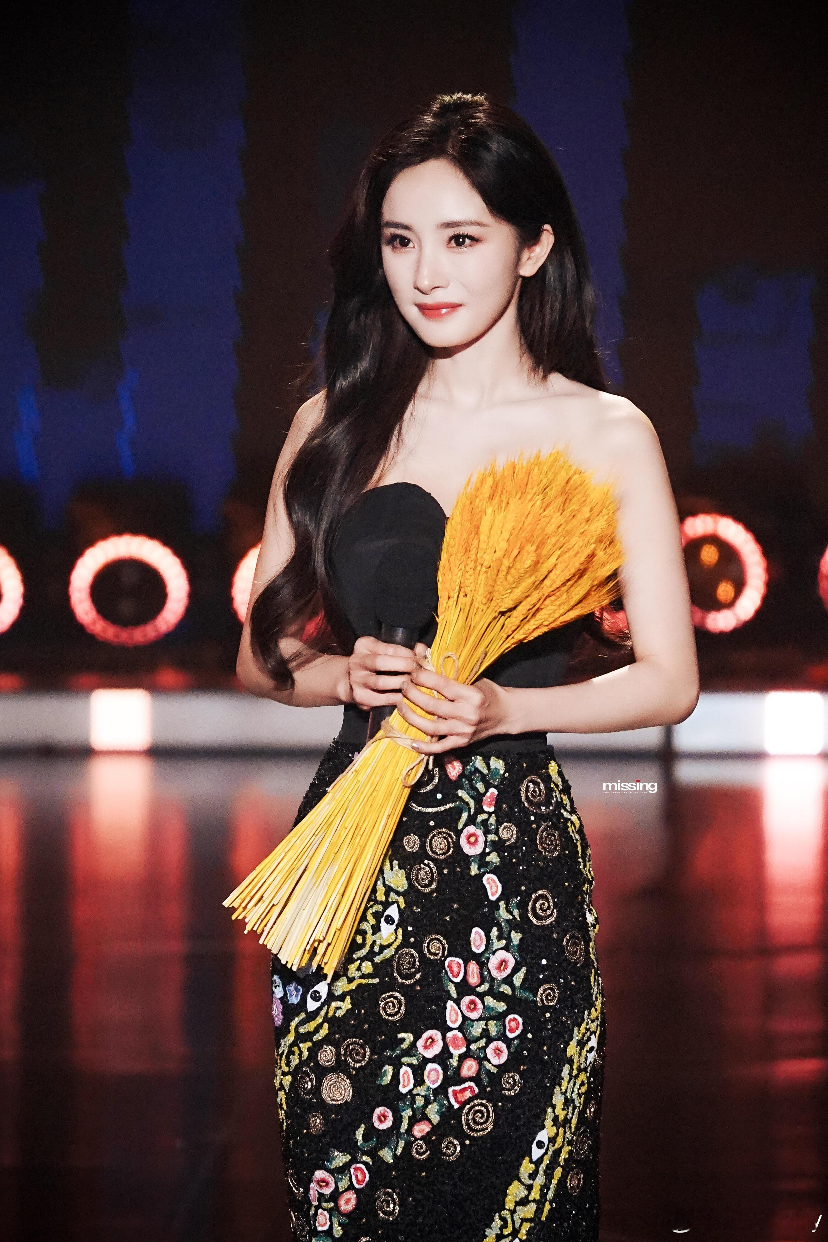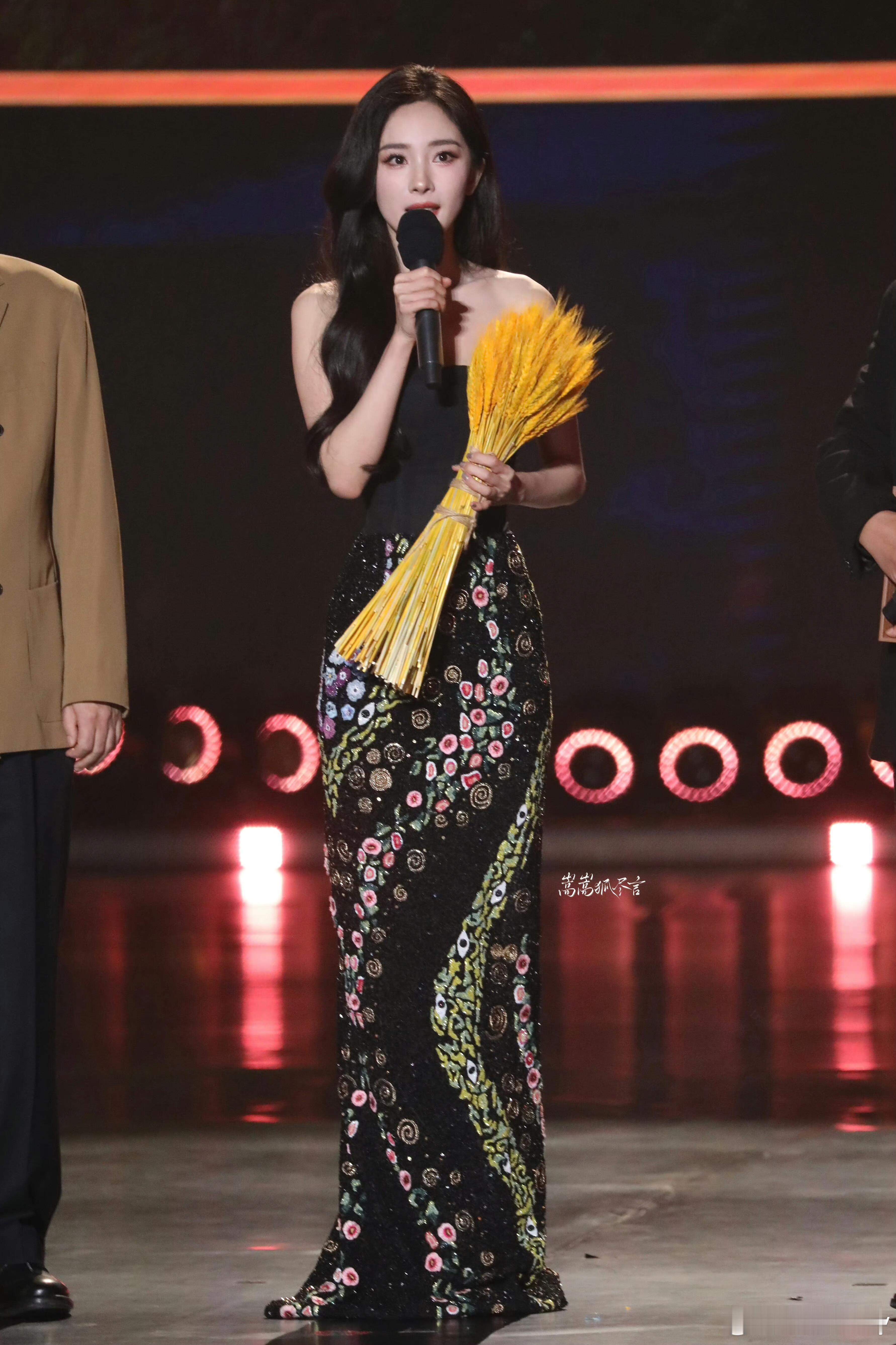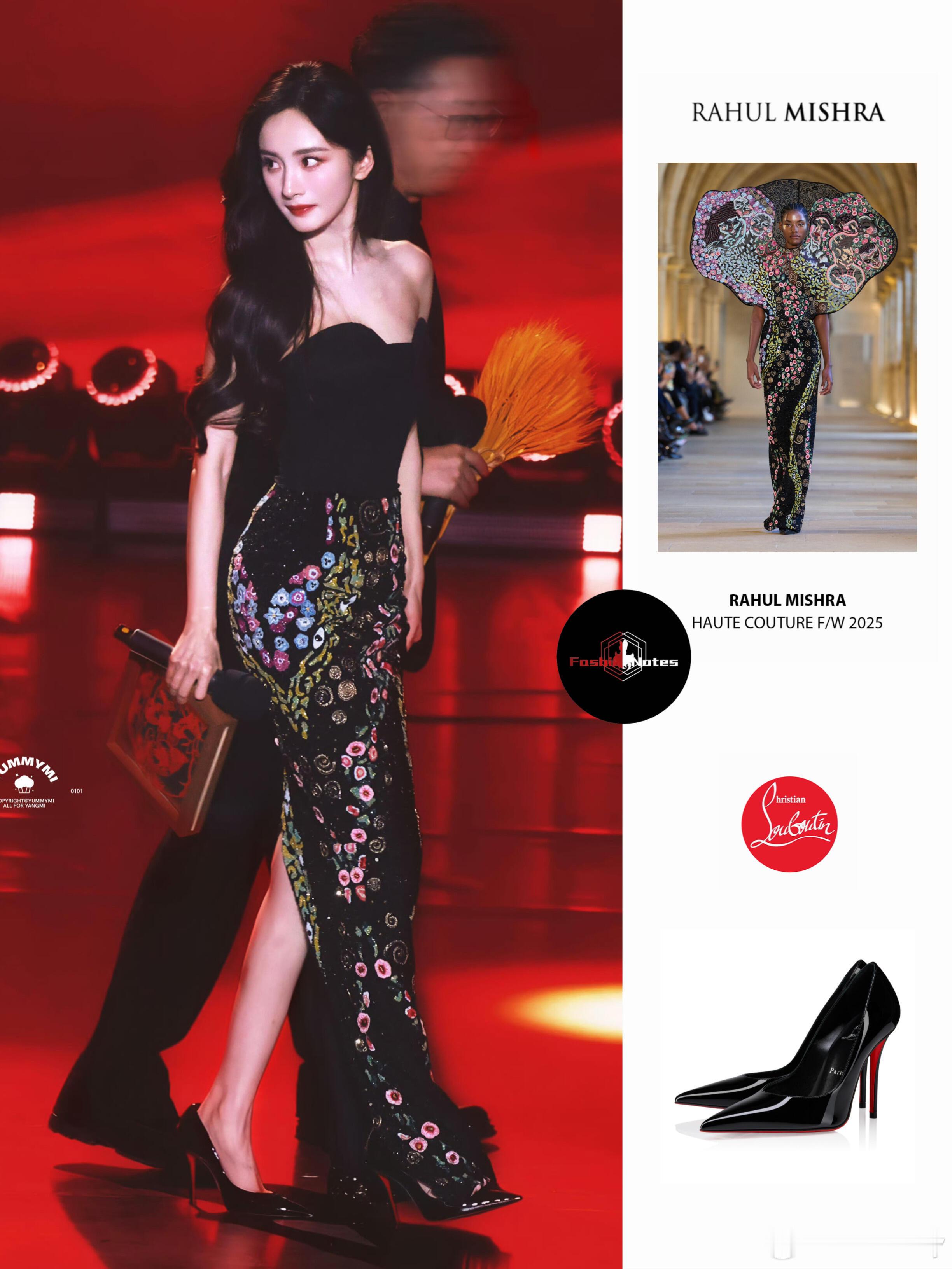 杨幂 ✖️ 2025中国广电视听精品之夜杨幂亮相2025中国广电视听精品之夜,身着RAHUL MISHRA 2025秋冬高级定制抹胸礼服,裙身艺术感印花与黑色抹胸碰撞,搭配CHRISTIAN LOUBOUTIN高跟鞋,于深默沉潜中往明亮处延展,尽显优雅大气的时尚格调~