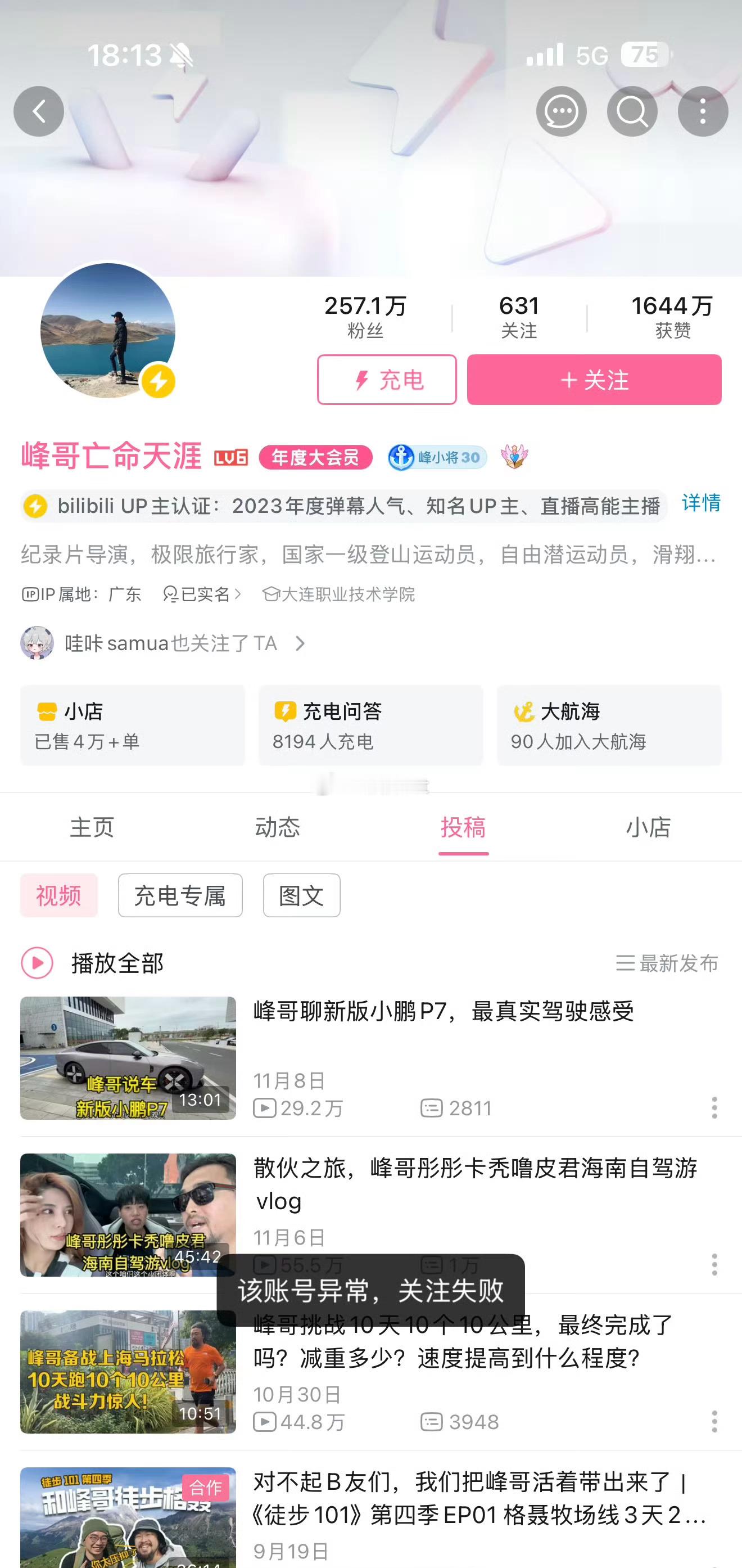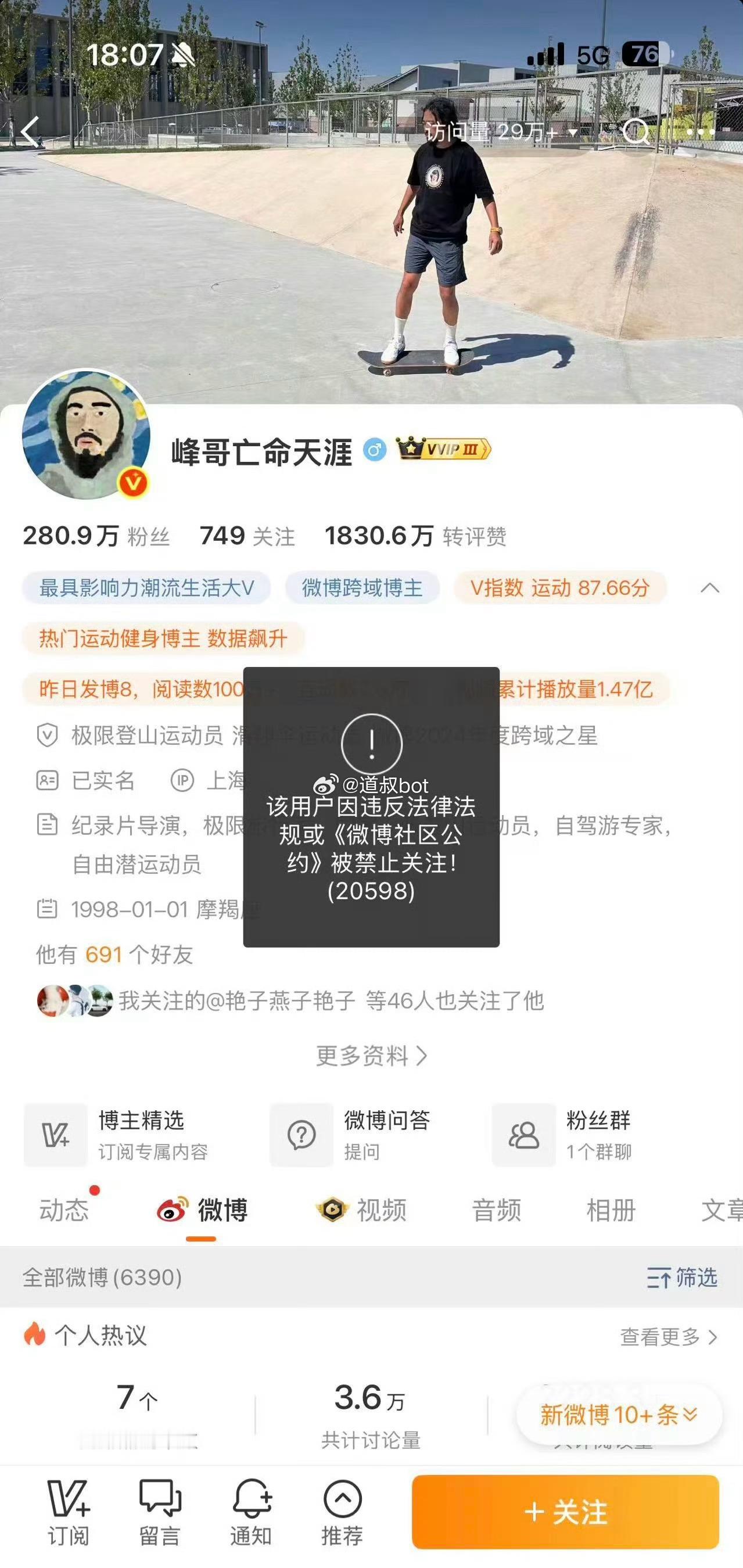 峰哥抖音账号被清空,B站和微博也都被禁止关注,前段时间还高调入职小鹏,这是什么情况?