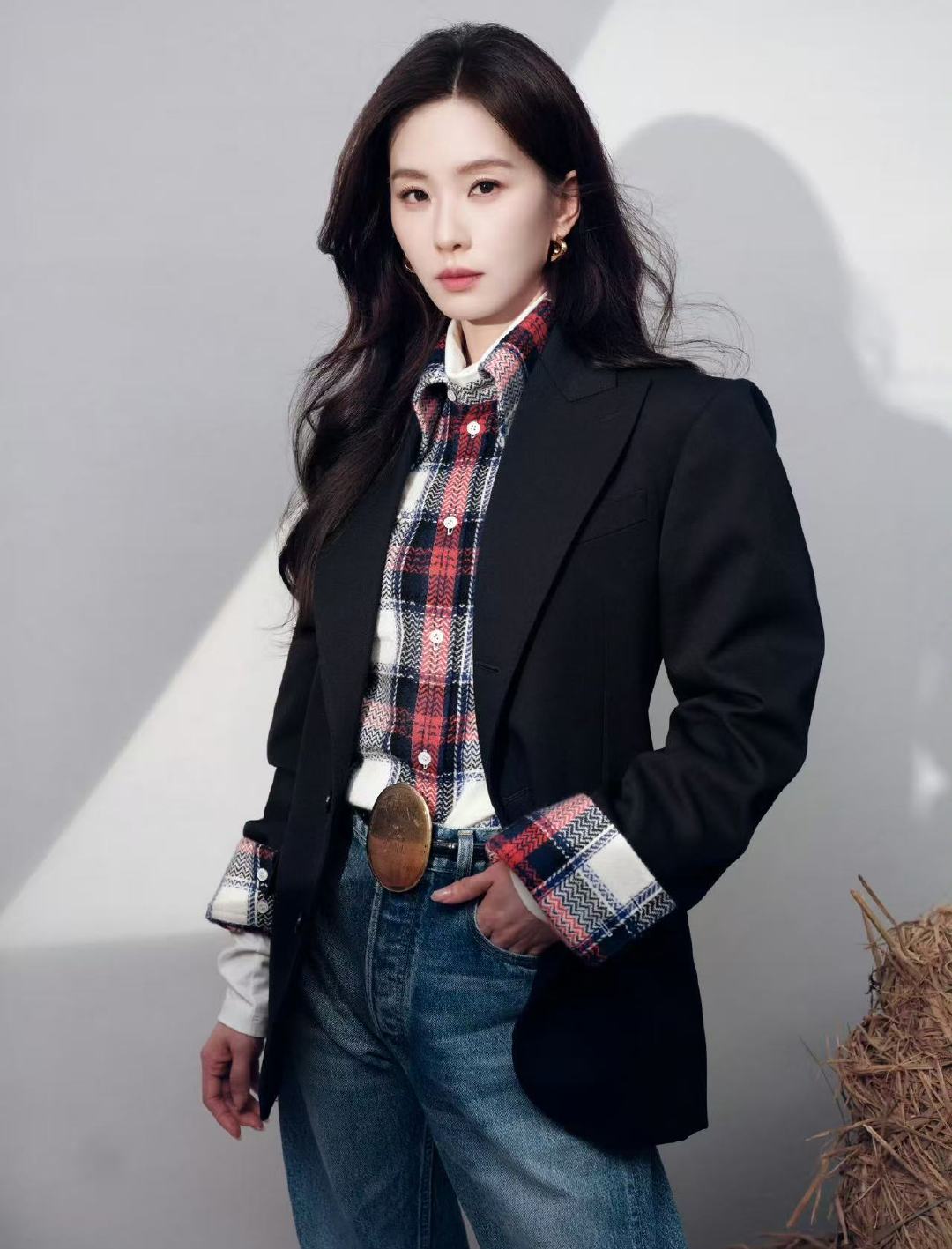 刘亦菲把死亡玫粉穿出了定制款的感觉,这种颜色普通人穿上分分钟黑三度,她居然能穿出