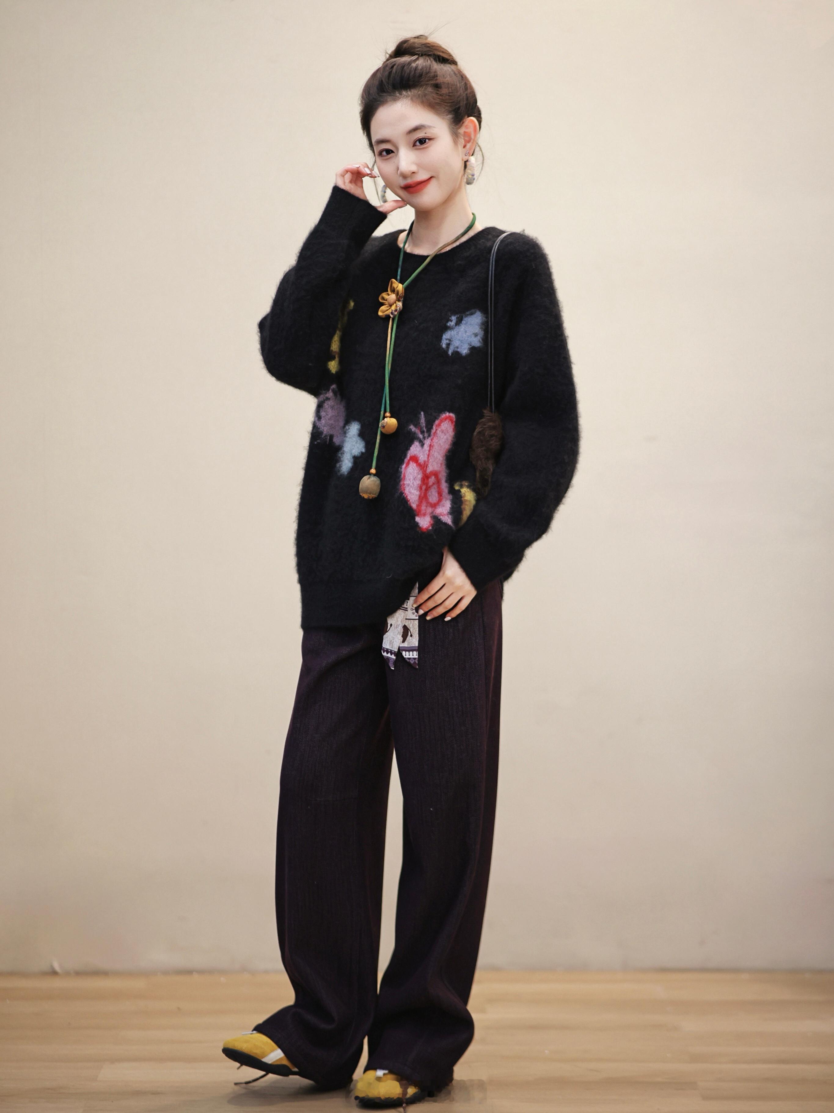不是...今年的毛衣都这么美得这么离谱吗!这彩色蝴蝶提花 灵动得像一幅画哈哈哈说是专门给仙女量身定做的也不为过吧羊毛/羊绒 这质感 太绝了!