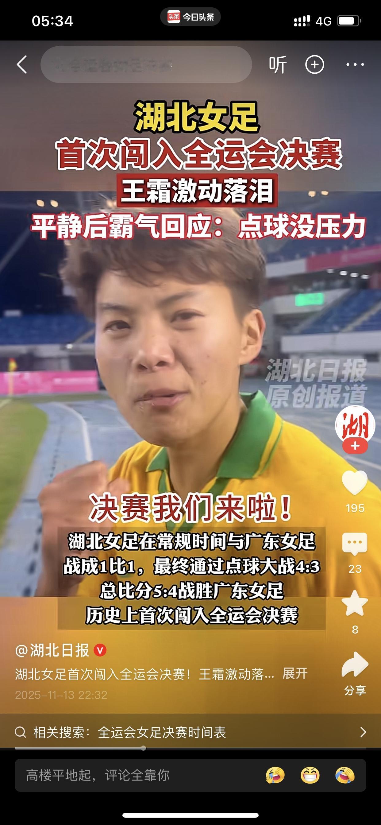 湖北女篮姑娘的竞技斗志是真牛! 还有湖北女足也是! 我为何这样说呢? 那就从全运会成年组女篮比赛说起,当时湖北女篮面对传统劲旅上海女篮,硬是以下克上击败对手,从而奠定自己打进八强基础,这也是她们队伍时隔12年打进全运会女篮八强,虽然没有打进四强,但那是实力差距太大,不是光靠意志力就能拼下的。不过,人家今天下午又一次在大比分落后的情况下,以下克上,实现逆转,一分之差险胜山东女篮-85:84,从而获得打5-6名的决赛资格。 接着是全运会U22女篮,在上半场结束落后的情况下,逆转翻盘,两节都是压制对方,结果是以5分险胜对方,让自己赢得U22女篮的开门红,对手又是上海女篮😂;虽然没有打进八强,但在今天对阵辽宁的9-12名排位淘汰赛中,又一次最后一节实现逆转,获得9-10名决赛资格。 然后再看湖北U18女篮,在一胜两负的成绩下,以小分优势晋级八强,相当于是跌跌撞撞打进八强;在八强战未能晋级四强后,竟然做到连续两场以下克上,完成逆转,就例如昨天下午5-6名决赛,明明第一节就被四川U18女篮大比分领先,但是湖北女篮没有放弃,第二节逼近,接着第三节又被扩大比分,可是谁也没想到,第四节实现绝地翻盘,湖北U18女篮单节砍下33分,四川U18女篮只得15分,因而四川U18女篮只能以79:83憾负,这样湖北U18女篮获得全运会第五名。 最后再说一下湖北女足,在今年具有多线作战任务的情况下,在面临各种国际和国内赛事的现实背景下,湖北女足依旧以疲惫的身体和巨大的压力,展现惊人的斗志,为湖北女足创造全运会全新历史,第一次打进全运会女足四强(这已经是创造湖北女足最好成绩了),但她们还在继续,再接再厉,昨晚又面对主场作战的广东女足,经过90分钟鏖战,加惊心动魄又曲折的八轮点球,才以胜利姿态挺进全运会女足决赛!(不管最终结果如何,都要给湖北女足点赞!) 此外,顺便提一下湖北U20男足,他们是全运会男足项目最耀眼的黑马,一路过关斩将,完成逆袭,也为自己省份的足球创造全运会全新的历史! 因此,我不得不为湖北女子篮球运动员和女子足球运动员的斗志点赞,更何况这是竞技体育最需具备的一种要素之一!