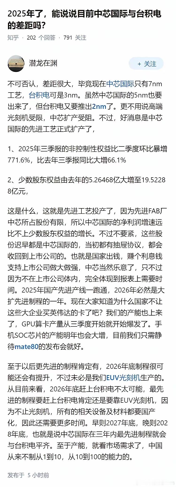 2025年了,能说说目前中芯国际与台积电的差距吗?
