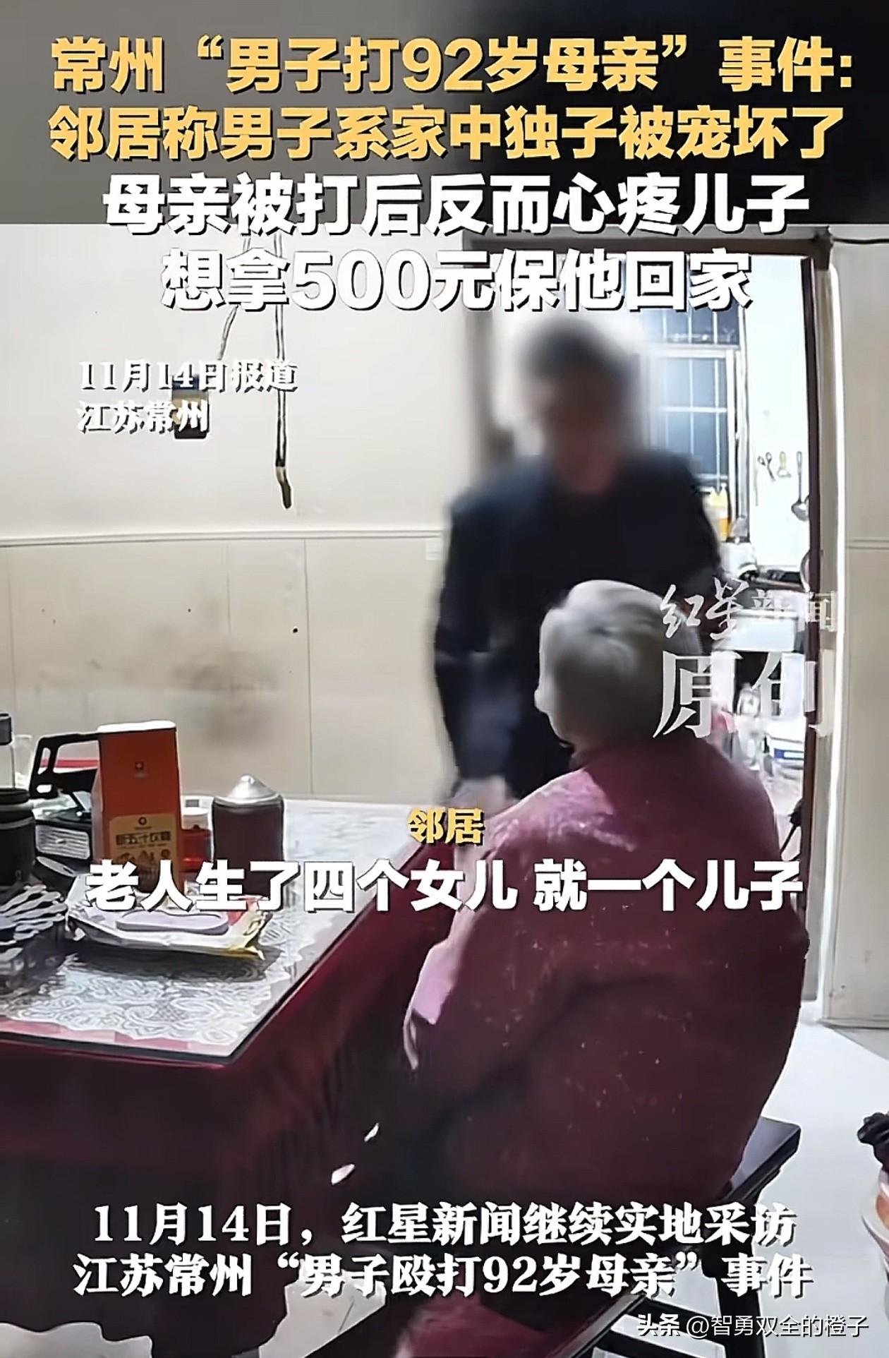 据邻居们说,被打的94岁老人尽管被儿子打了,但还是不打算计较,从医院检查回来后,知道儿子被警察带走了,她特别的着急,反而担心儿子的身体。 老人说儿子患有糖尿病,怕他承受不住,所以老人回家拿了500块钱,准备打车去看儿子,希望儿子能回家! 原来男子是老人的小儿子,今年55岁,老人一共有5个孩子,前4个都是姐姐,所以从小老人就特别宠小儿子,要啥都给他买,4个姐姐也很宠弟弟,可能就导致男子脾气不太好,挺暴躁的。 邻居猜测,这次男子打老人的原因,可能是因为老人年纪大了,记性不太好,俩人因为生活琐事发生了口角。 现在,老人已被小女儿接走照顾了,希望老人以后能安享晚年吧!