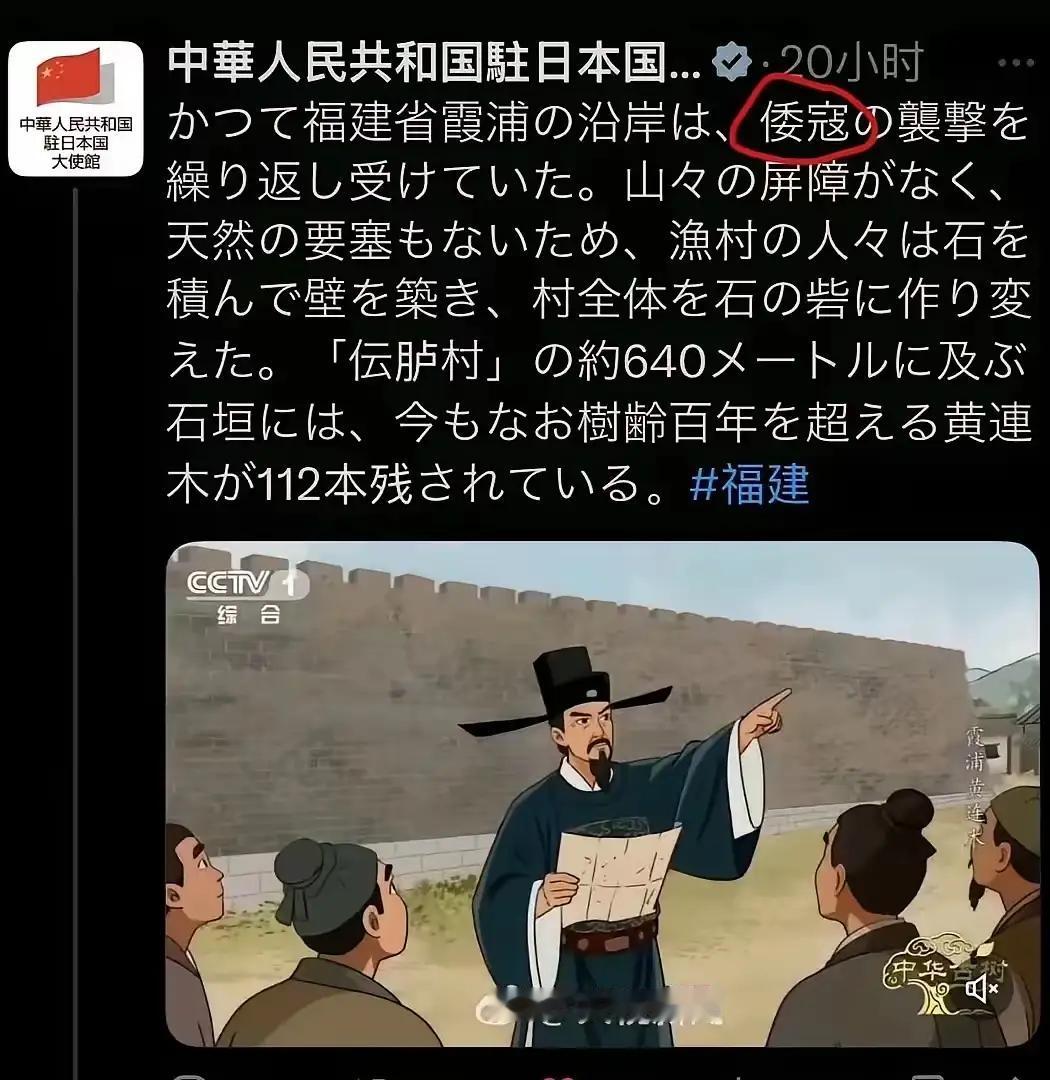 直接摊牌了?驻日大使馆径直使用“倭寇”一词,着实罕见。与此同时,央视播放戚家军相关内容。种种迹象皆表明,中方对日本的愤怒已达顶点,只差一个契机便可能付诸行动。 这组合拳一打,很明显中方对日本的不满已经藏不住了。 日本这些年在很多事儿上小动作不断,又是跟着美国搞围堵,又是在历史问题上死不认错。中方一直很克制,这次有这些举动,估计是被日本的一系列骚操作给惹毛了。现在就看日本能不能识趣点,不然真惹急了,后续不知道会有啥大动作呢。