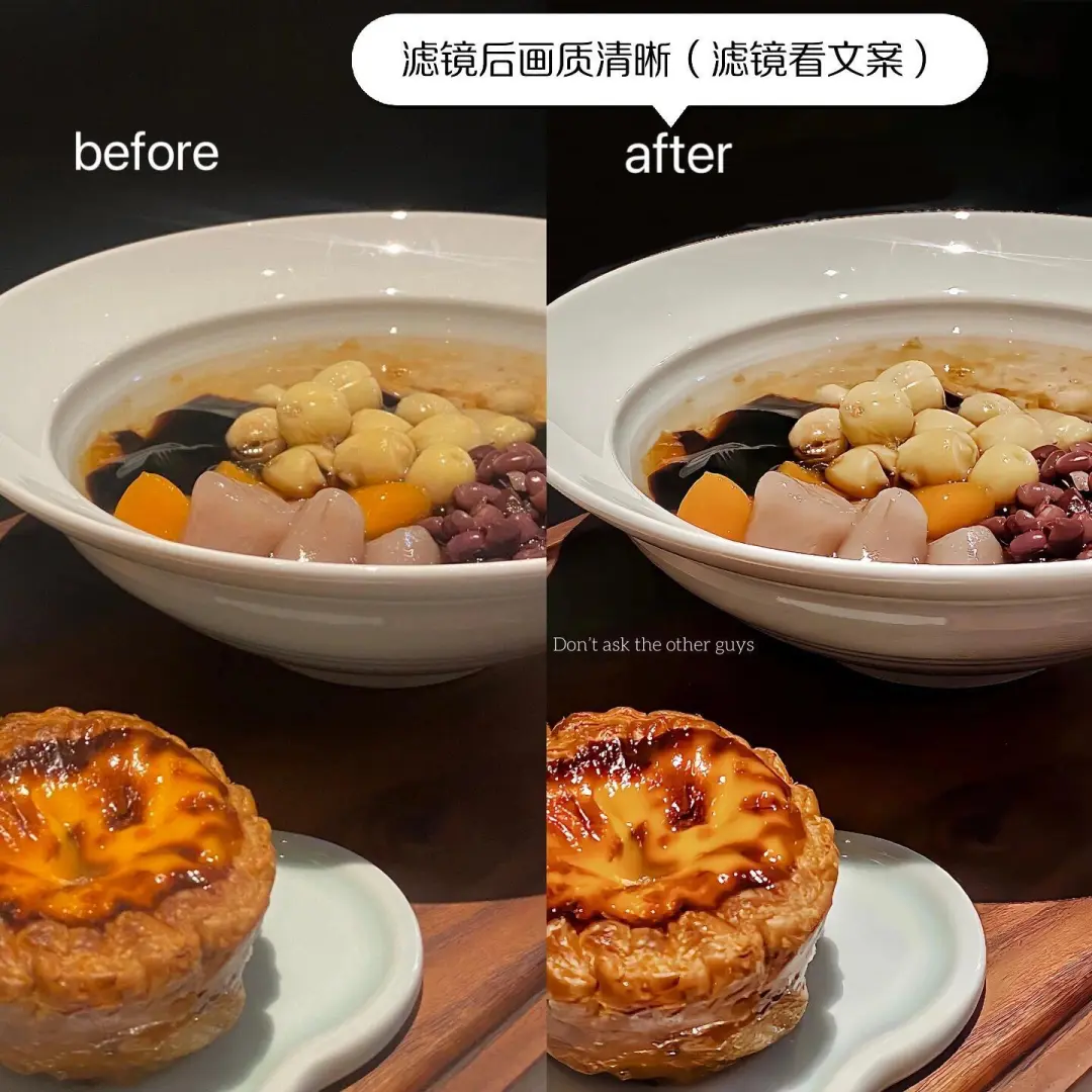 最近降温 想吃热乎乎的双皮奶[喝奶茶R] 啊啊啊啊啊 谁来告诉我GZ哪里有好吃的双皮奶[暗中观察R] 💛滤镜:🌟图 滤镜-质感-棕咖 光感+10(10-50) 亮度+15 对比度+30(甜品和背景色差会拉开) 高光+20(亮处更透亮) 阴影-5(背景会暗下去) 色温-5 锐化+70(20-80) 参数不是固定的 根据实际情况调整 大家注意数据高一点的参数即可 💛质量修复: 针对锐化过后建议用一次质量修复 质量修复后图片会比较清晰柔和 ~~~~~~~~ ❤️主页会持续更新构图和滤镜❗️