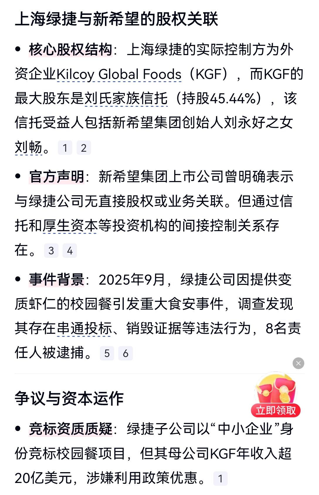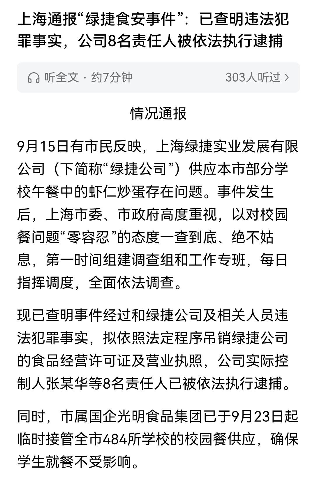 [奋斗]在“全网关注”下,上海“黑心AB校园餐”结果大快人心[耶]简而言之——垄断中标十年,果然有👻,张国华等8人追究刑事责任,“绿捷”基本上“寿终正寝”[吐彩虹] [思考]实践再次证明,“多人合作”的犯罪,就不可能铁板一块,只要“决心去查”,多少会有收获[强]现在,就看能不能进一步“穿透”,看看“幕后老板”,到底是谁(个人觉得,新希望刘家,更像是“财务投资人”而已)[what]