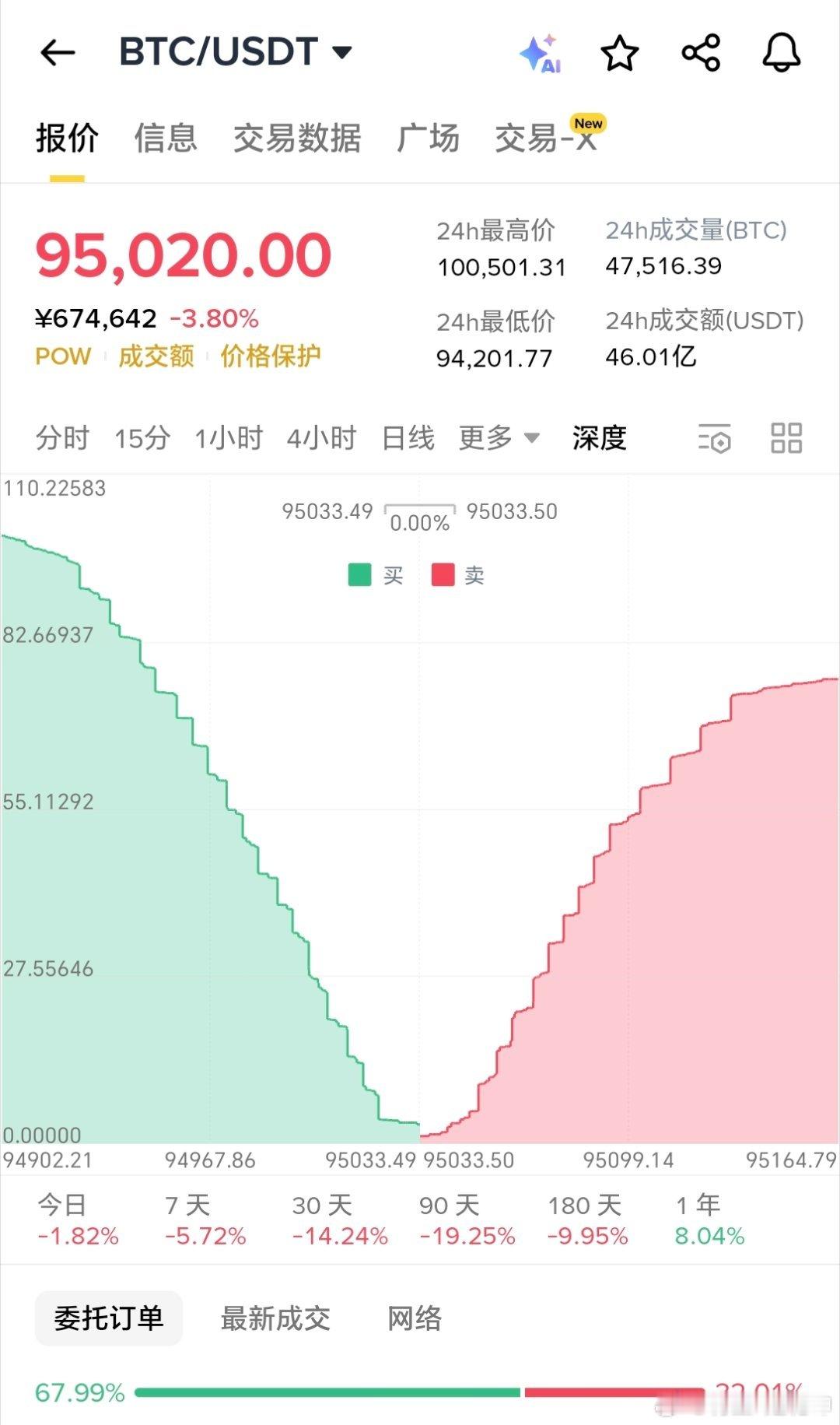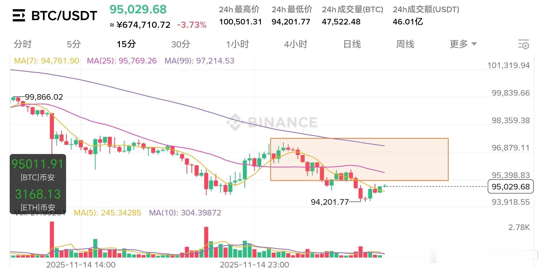btc空头强势回落。回落是现在的主旋律。价格只要有反抽,都是做空的时机,就怕不反弹给空机会。因为不反弹大家都不敢追空。回踩如此之大,那么走反弹也在情理之中,所有空仓的选手。可以等反抽96200-96700区域继续空,看跌92000附近