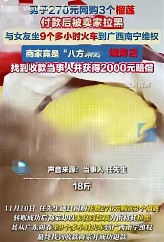 “是个狠人!”11月10日,一男子花270元网购3个榴莲,转账成功后被卖家拉黑。一气之下便和女友从广东阳春坐9个多小时火车到广西南宁维权,最后怒赚1350元!这波操作真的太解气了! 任先生吃了三年榴莲,行情门儿清,看到群里18斤马来西亚金枕才270元,直觉不对劲。 光拿货价都不够,还号称产地直供送开果器。架不住卖家晒果园图、亮市场认证,他备注要溯源码转了账,结果秒被拉黑。 更气的是,收款方居然是家烧烤店,群里还炸出一堆同受害者,有人直接亏了近2000元营业额。 换别人可能认栽了,但任先生偏不!带着三年价格数据、联系好出口协会,拉上南宁受害者就冲了过去。 面对店主“收款码被盗”的狡辩,直接甩证据报警,查出23笔榴莲诈骗记录。 最后按退一赔五,不仅拿回本金,还赚了几倍赔偿,顺便曝光了避坑指南:低价超30%别碰、要溯源码、拒绝私转! 真不是差那270元,而是咽不下被愚弄的气!生活里遇到这种诈骗,你是自认倒霉还是硬刚到底?来评论区聊聊你的看法~网购榴莲