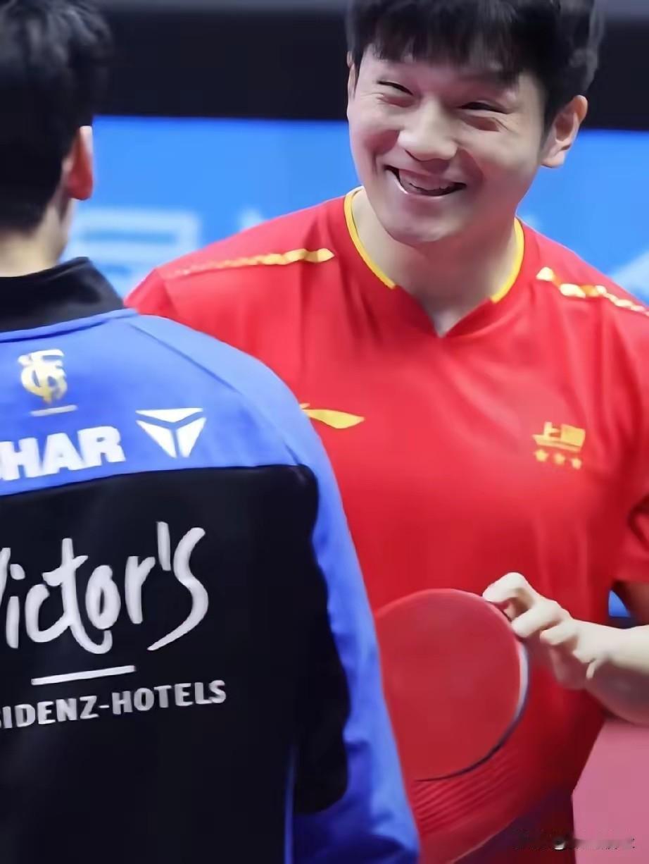 虽然樊振东采访的时候, 一脸严肃, 平时也不怎么笑, 但是他的内心还是个少年! 在熟悉的八一队员面前, 他还是可爱的像个孩子。 东哥就是闷头研究技术的小孩, 很单纯,也很容易满足, 只要给他宽松的环境, 让他安安静静的打球, 就是对他最好的保护!