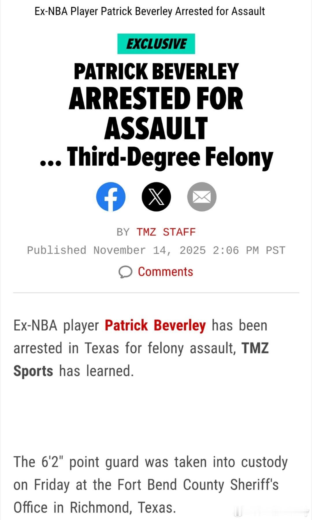 TMZ:贝弗利在德州因袭击被捕,这是项三级重罪👀 六年前:未来五年是我的六年后:监狱是我的