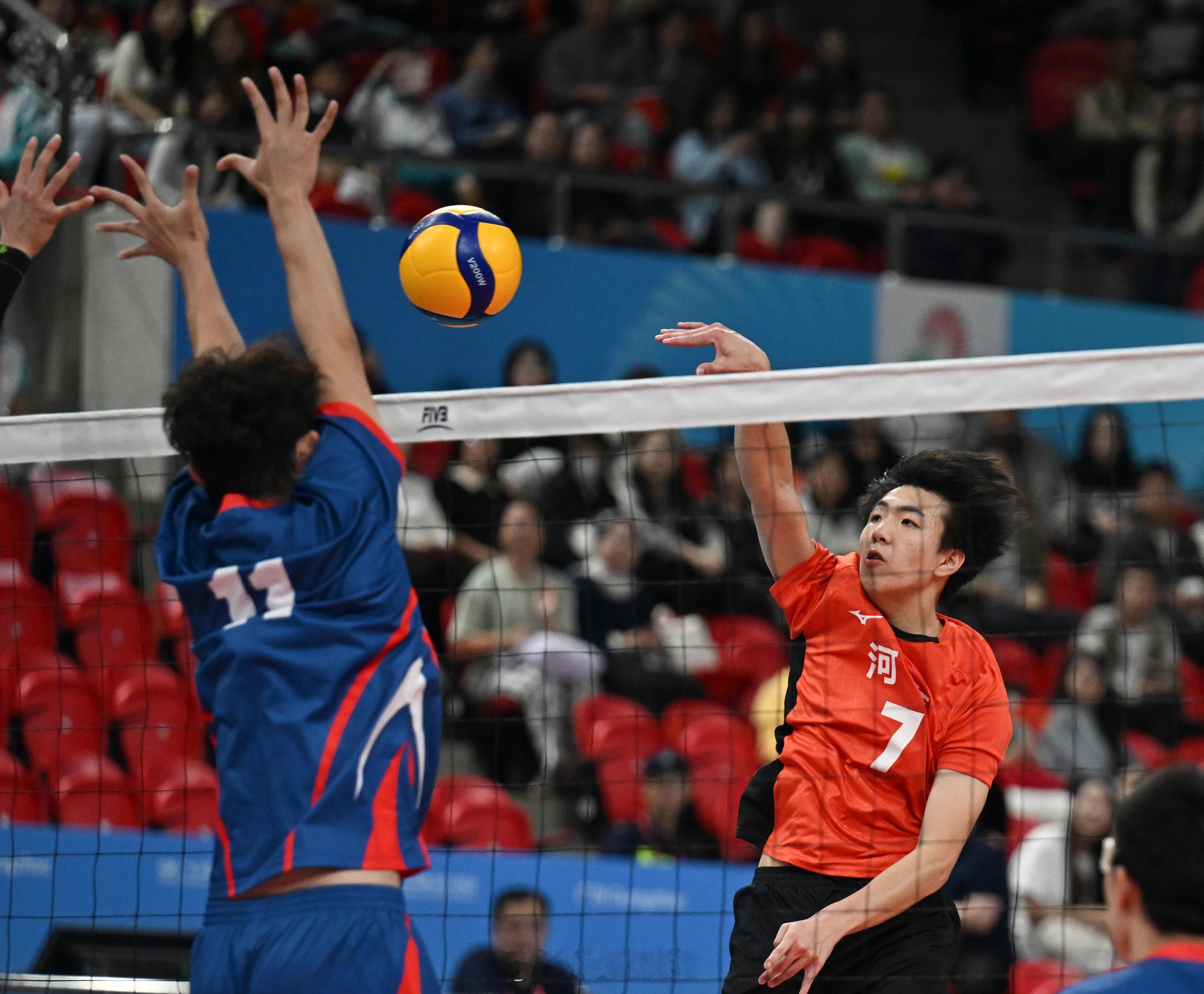 组照: U18男排四分之一决赛,11月14日,黑龙江队3-2大逆转河南队(新华社记者 周牧 摄)。