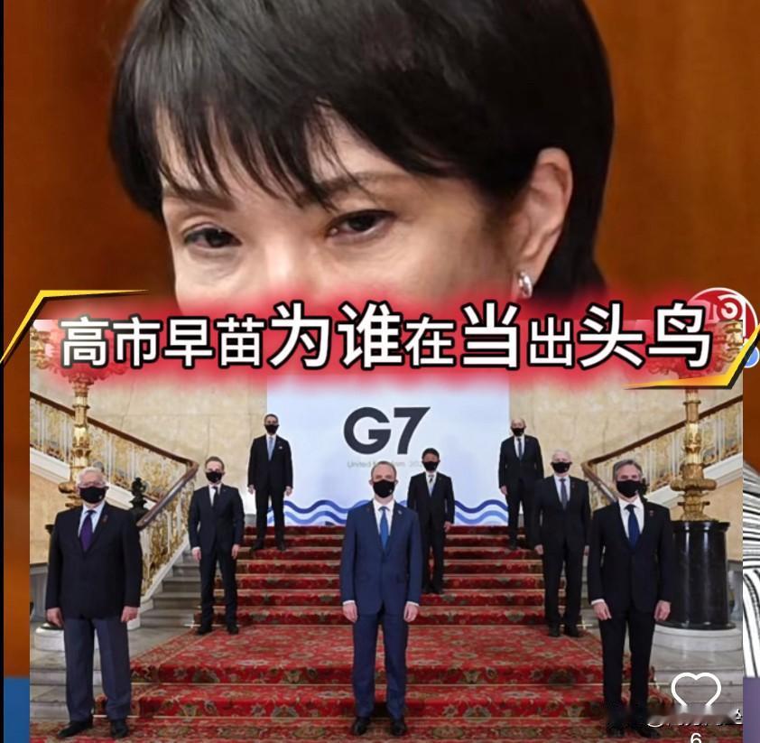 台湾成了棋子,高市早苗为谁在当出头鸟 高市当着全世界的面把态度亮明了,没有任何遮掩。高市认为,她说的话符合本子国的历史政见,因此不予撤回。 言外之意,她说出的话可不是在信口开河,也不是口误说错了话,而是本子国的历史上就是如此传承的国家史观。 这背后的寓意不言自明。说明两个邻邦国家面临着复杂的历史局面,当下更需持有谨慎的态度。 但不管如何,一个刚上任的女流之辈,她何来的胆量,说出如此具有破坏力的话,公然要与中国为敌。 高市的一番话破坏性极强,就像人与人在公开场合有矛盾,有人挑起了骂战,双方不一定会立即动手打起来,但你一句我一句,总是要互相怼过去的,或许还有周边看热闹的人过来劝两句。 高市的一番话成了伺机挑动的必然。 高市的一番话,引来了外交部的强烈抗议。 高市的一番话,引来了G7国家的联合发声,称不允许中国对台湾动武。 高市的一番话,引来了美国国防部的呼应,“让时间回到1937年”,这是美国对高市言论表达的支持。 台湾问题受到了如此多“不相关”的关注,并设置不相关的人为障碍,注定台湾问题不是一个简单的问题。