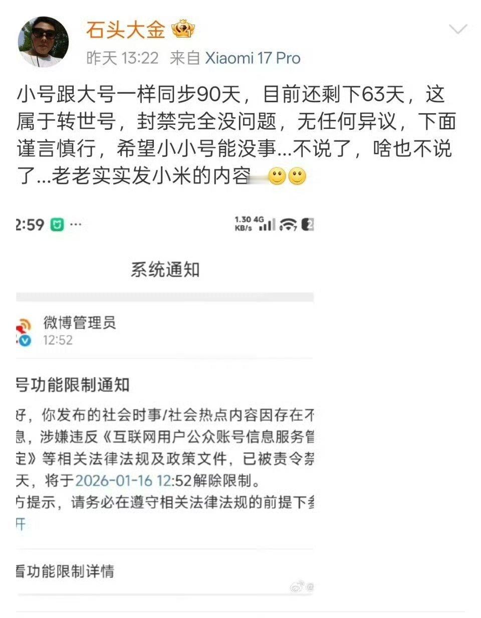 继石头搞机大号,金子搞机小号被封后,转世为石头大金,希望这次他是真的认识到自己的