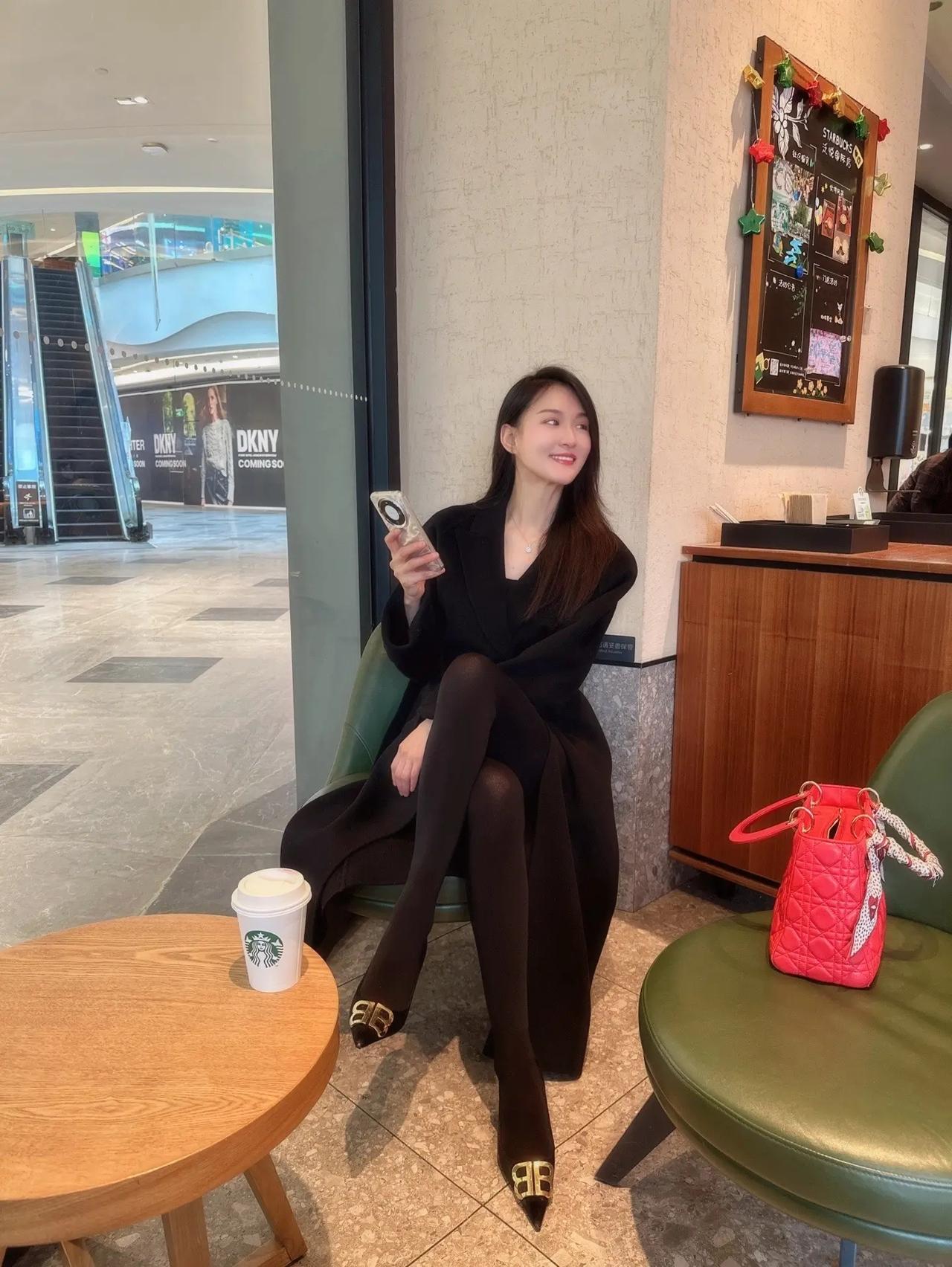 相比黑色穿搭的高级感,甜甜的微笑更像黑色中闪耀的那束光