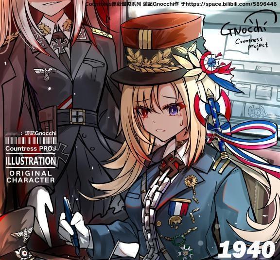 1940年 法国投降 第二次贡比涅停战协定-法国/ND(车厢中的禁锢)——插画稿 完稿 静坐者为胆怯错失了最后的良机,1940年法兰西担忧了十多年的危机终于到来,而她的一切准备宛如薄纱,她建起的防线和那些外交努力都以极其讽刺的结局崩溃,持续了70年的法兰西第三共和国,在短短42天后就被ND毁灭。 一战英雄元帅贝当继任总理,在十分不利的条件下选择向ND停火求和。一战未消的阴影和二十余年的矛盾与懦弱,让她不敢再继续抗争,于是法兰西再次来到贡比涅森林的福煦车厢,签署第二次贡比涅停战协定,而这次她是战败方,胸口的共和国徽和荣誉军团勋章正在瓦解,她此生一切荣誉和尊严都在此刻破灭。ND将锁链拴在法兰西脖颈,从此收为手中傀儡。 “还记得这节车厢吗法兰西,22年前我怀着耻辱走进这里,但今天我的心情无比舒畅,连这车厢的铁皮味都变得如此香甜,德意志大仇已报,上一世打了四年都没达到的成就,我仅用四十日就完成了,这才是N最完美最纯粹的日耳曼力量!” ND把法兰西按在座椅上,面向投降的文书,法不敢违抗,恶魔的利爪已经触及了她的心脏,这是她唯一的自保道路 “来,签吧,我可爱的法兰西,不必惧怕灭亡,我会贴心地为你准备一块自由区的,维希、里昂、马赛,都是很好的安息地不是吗。在我身边,你很快也会拥有血瞳,并为这股力量而痴狂。今后你什么都不必思考,沉浸在暗与血中,追随我即可。不久以后,你也会享受到和我一样的光荣!” ND那股邪恶的力量已进入法兰西的身体,她的眼瞳在暗尘的影响下逐渐变得血红,暗示着她的转变与堕落。 “你的另一截发绳去哪了?看来还是溜走了几只苍蝇啊……哦?一部分逃到了不列颠吗,无所谓,那座破岛总有一天会被我毁灭,不列颠很快就会来陪你的,到时整个欧洲,以及你们英法全部的海外领地都会归我统治,以平我建国数十年来遭遇的不公,任何反抗我的人都无处躲藏。” 国家娘Countress