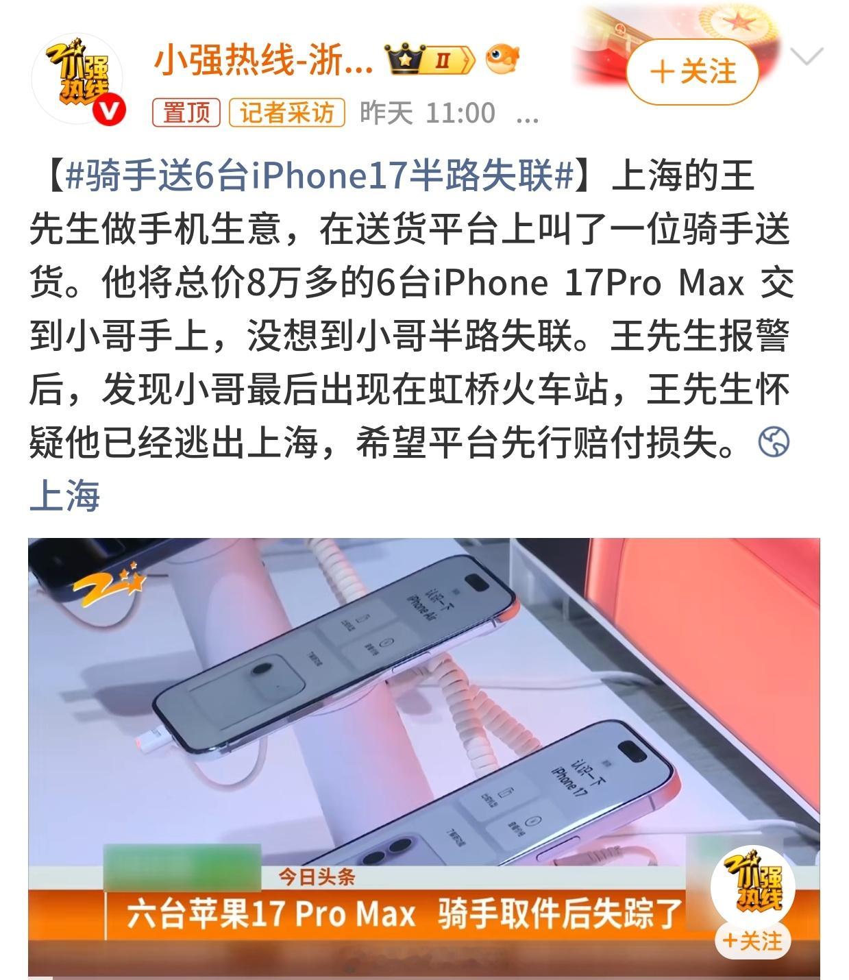 现在都是实名制认证他还能跑哪去?就看想不想认真找你罢了6台iPhone 17可不是什么小事躲是躲不过去的自己好好寻思寻思吧
